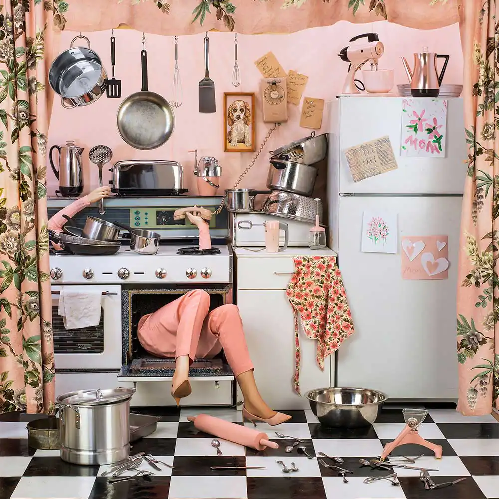 Patty Carroll has been known for her use of highly intense, saturated color photographs since the 1970’s. Her most recent project, “Anonymous Women,” consists of a 3-part series of studio installations made for the camera, addressing women and their complicated relationships with domesticity.