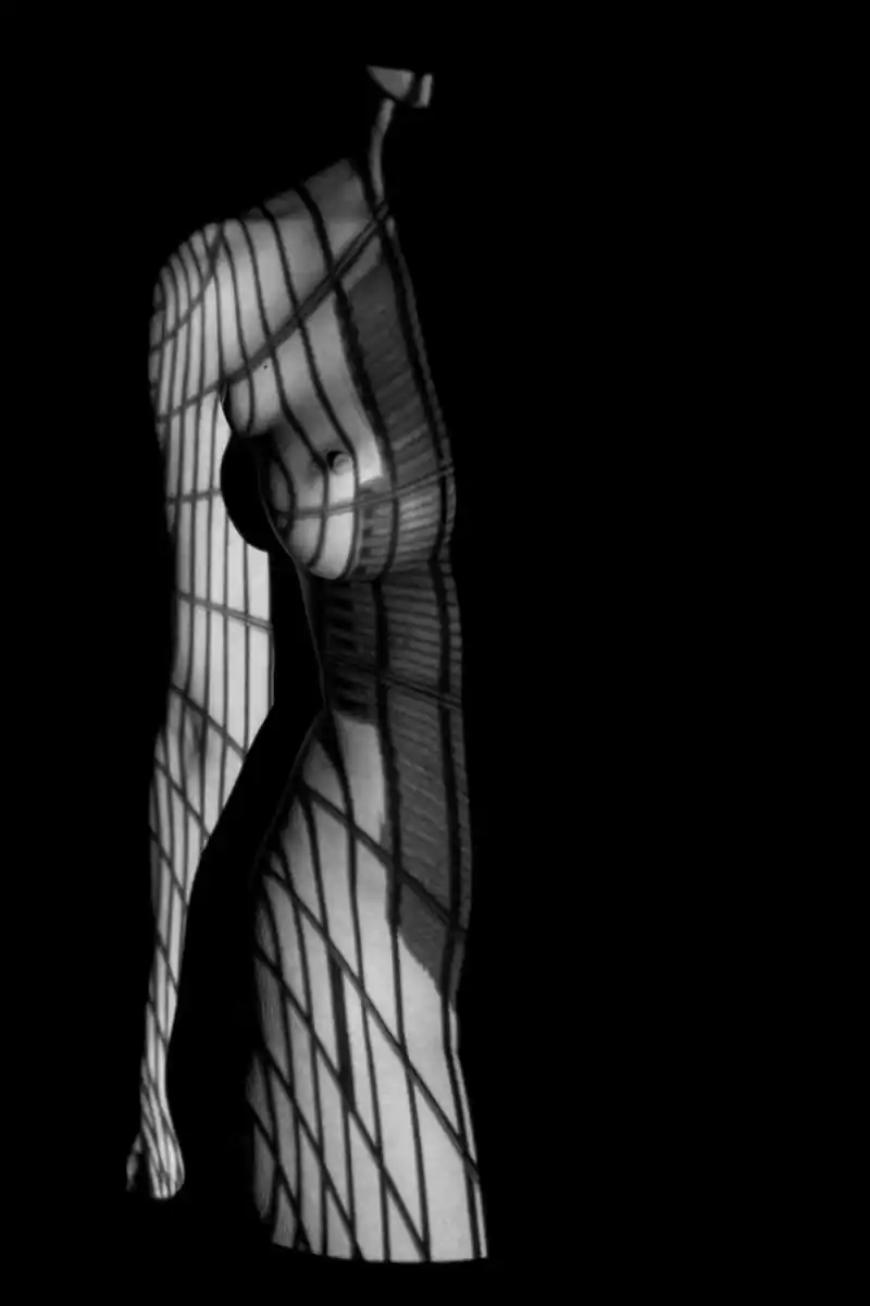 Guided by his background in architecture, Theologitis proposes a novel approach and re- shapes the female body. The lines of the buildings are bent, refracted, morphed in order to follow faithfully the magic of “his” naked lascivious body – which responds by composing in turn original plastic landscapes which come to focus in front of delicately lit rideaux.