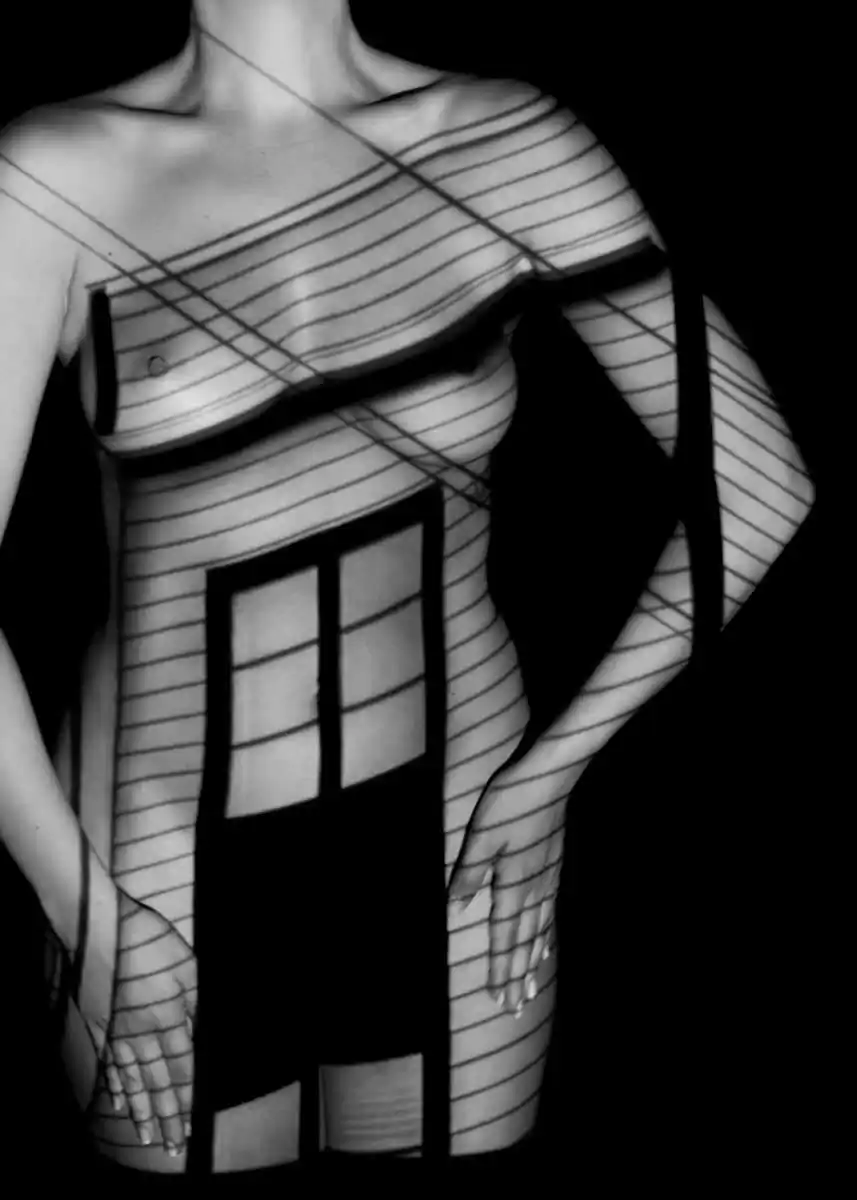 It is a series of photographic experiments where the distortions of the projected images on the naked body create abstract visual effects.
