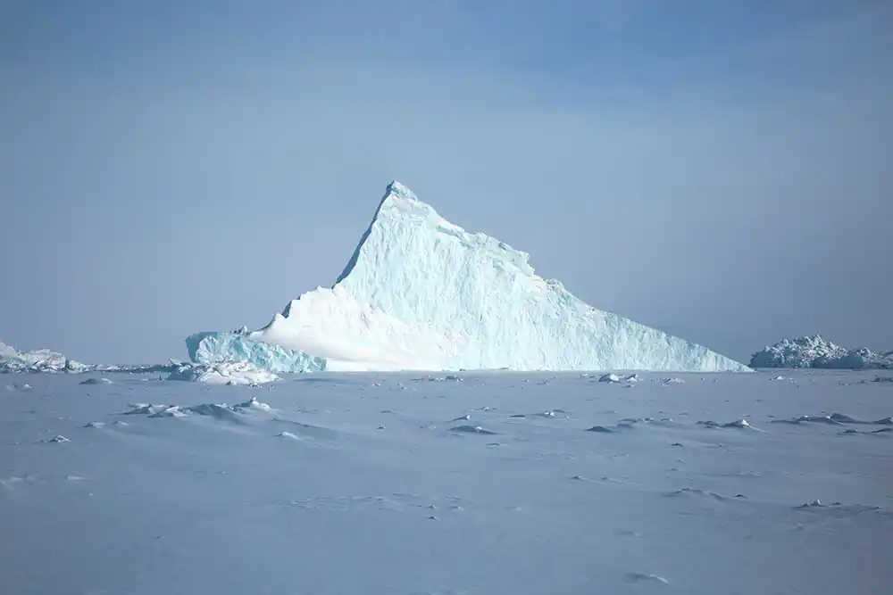 Qaanaaq, Groenland – Triangular-shaped iceberg trapped in the pack ice at Qaanaaq