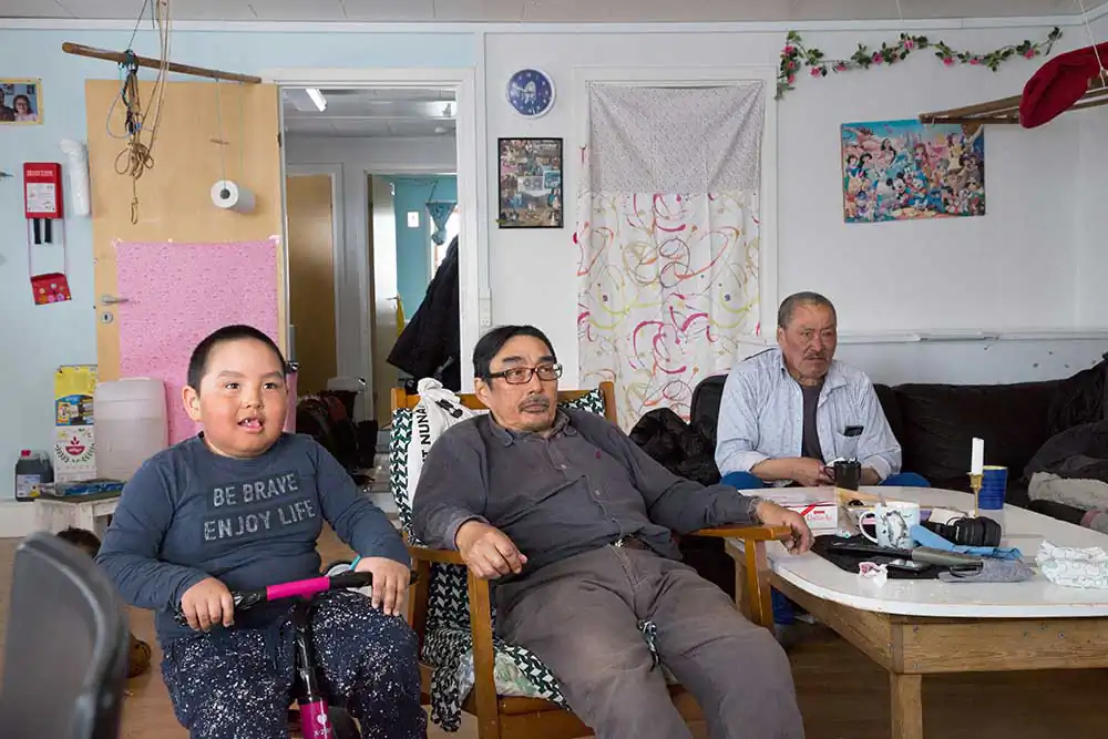 Siorapaluk, Groenland – Hans and his grandfather Nukagpianguak are watching television at the Hendriksens’ house.