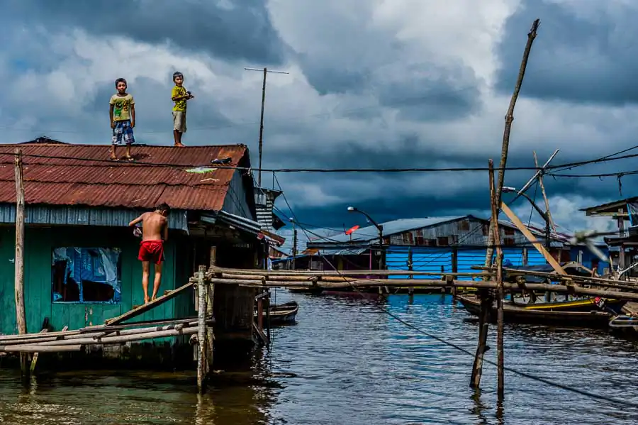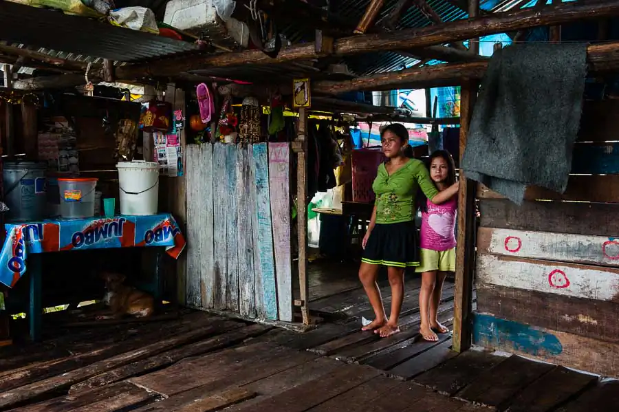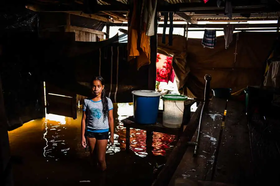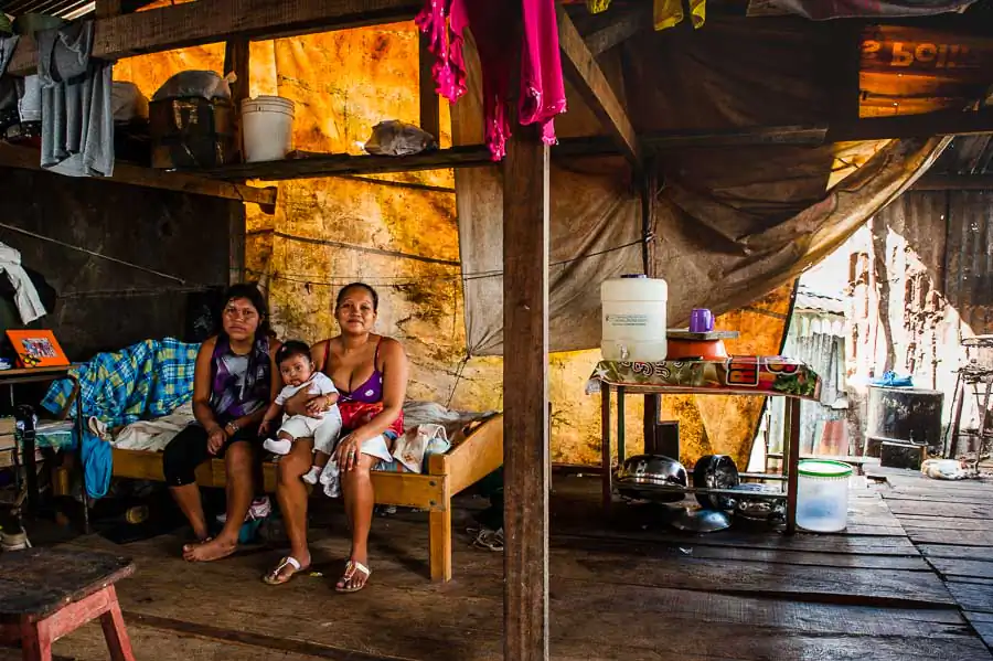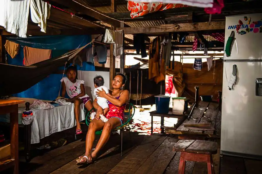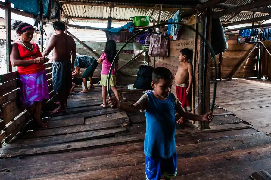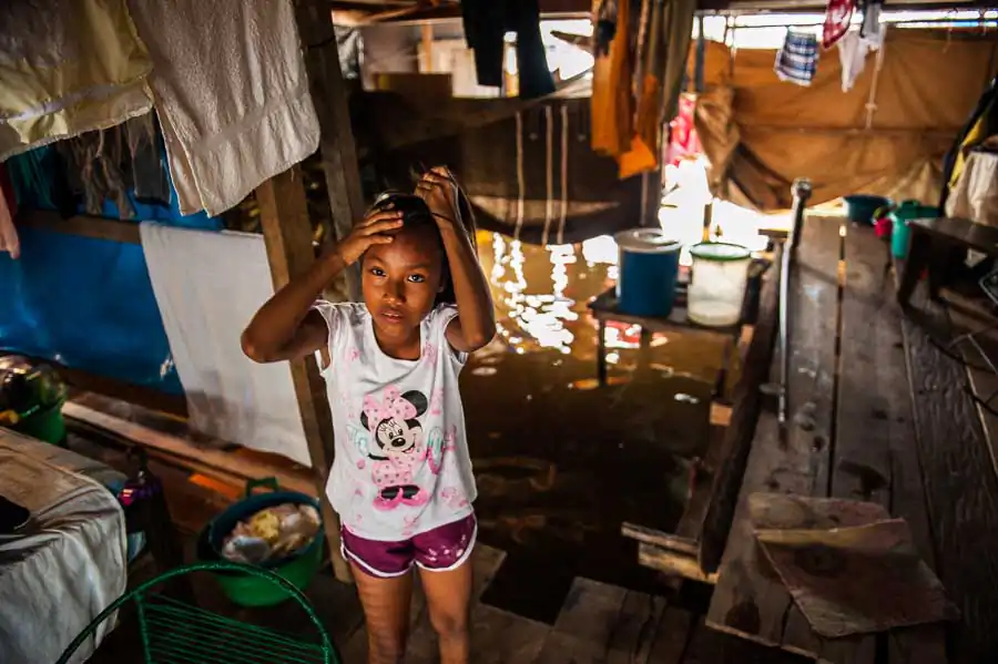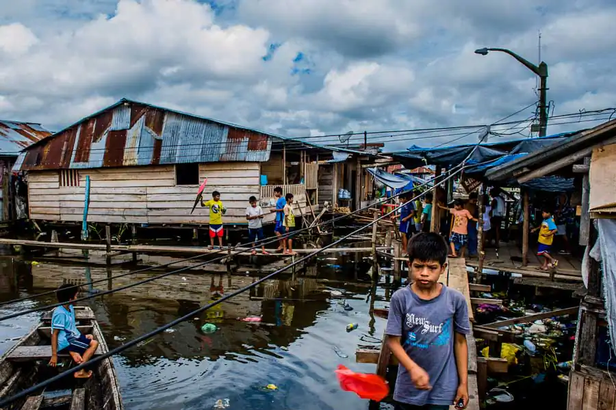 It is estimated that in the “floating district” there live 65,000 inhabitants, although the number is much higher. The society lives in makeshift homes on platforms and high stilts protecting them against flooding during the rainy season. Due to overcrowding, in homes, there live from two to five families with children, often in two rooms. The majority of the population lives in extreme poverty – without electricity, sewerage and drinking water. Defecation, bathing, washing and cooking in the dirty river full of garbage is commonplace for most people. Only “richer families,” that is, those whose father has a stable job, have access to electricity and clean water transported from the city. In the life-giving water float piranhas, snakes, plastic bottles, feces and other filth. The situation does not improve during the dry season, the waste and the remains of garbage wait until the next tide takes them, the dirt is everywhere! The low standard of living has led to an increase in unemployment, crime and alcoholism. Often, the only source of income is the money from illegal drug trafficking, prostitution and illegal poaching animals from the jungle. Another problem is the very low level of education or lack thereof. For half a year, schools are flooded with water, which causes their shutting down. Even when they are open, few children attend them. Firstly, it is too expensive. Buying a pen and notebook is often almost impossible, not to mention books. Secondly, often the elderly are illiterate, so they do not see the need to send their kids to school. Thirdly, 13 year-old girls are often already mothers and they do not care about it. Existence in the district forgotten by the government carries a lot of uncertainty and anxiety, many respiratory diseases, HIV or malaria as well as premature parenting, child deaths due to drowning, lack of education, hunger and overpopulation.