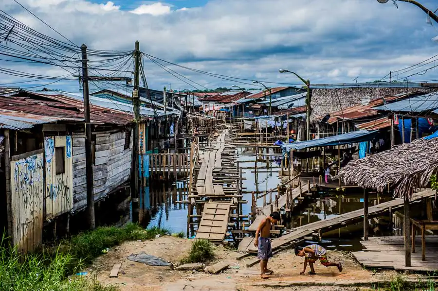It is here where at a huge market people can purchase everything – from Chinese trinkets to illegal wild animals. Belen is not only the largest bazaar in the Amazon but also huge slums – slums in the heart of the jungle. The district of misery lies on the river Itaya and for six months is flooded with water, which is why locals call it the “Peruvian Venice”.