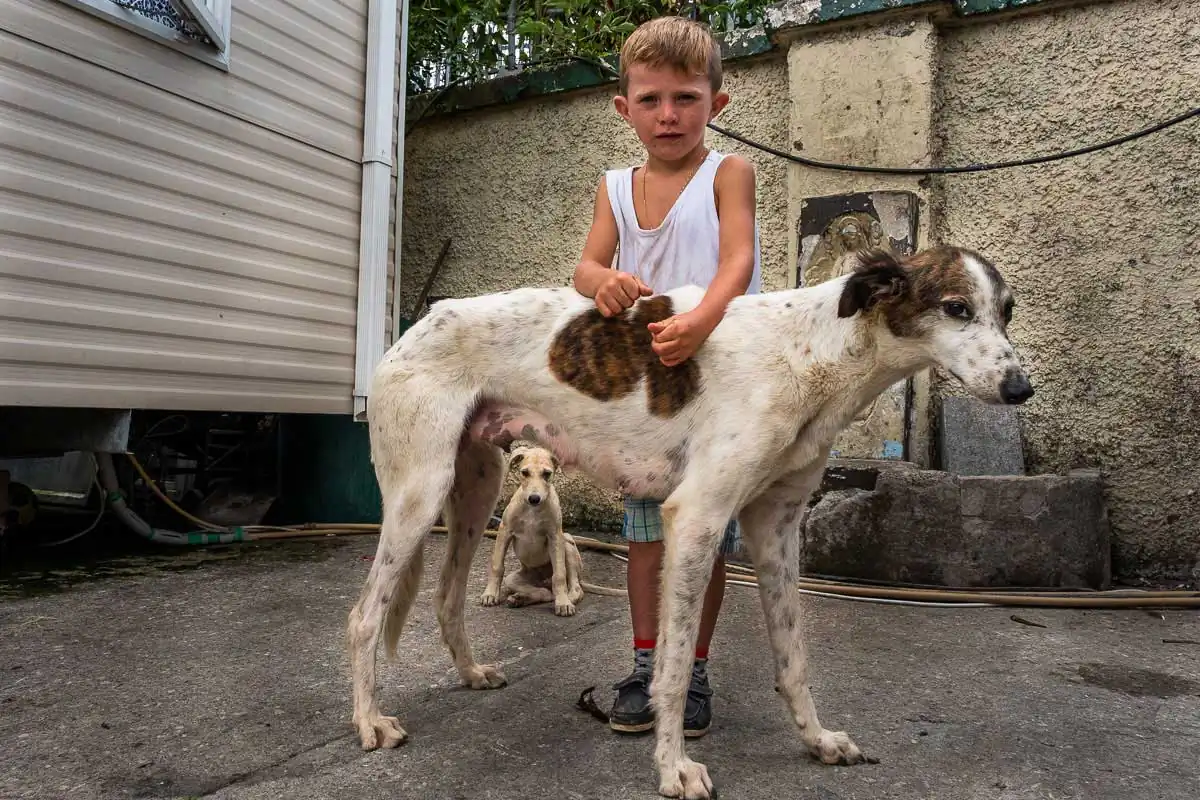 But perhaps the stronger link to the culture is the connection to animals. Most Irish Travellers are raising dogs, especially greyhounds, with lots of puppies around. Horses are especially important for the Travellers. Though keeping a horse in a halting site can be challenging and costly, the Travellers dearly want to maintain that part of their culture, and want to share this passion with their sons. (Dealing with the horses still seems to be primarily a male activity in the Traveller’s community.)