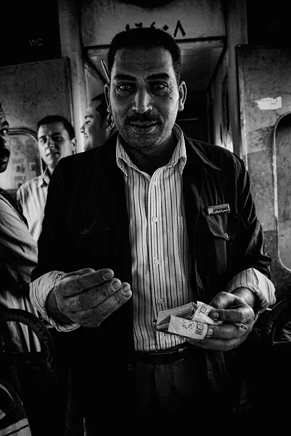 The folorn people who spend a quarter of their every day, just to go back and forth from work. Coming all the way from villages, cities and small towns.On the crowded third class train, the one with the lowest cost, packed with three and four times the number of passengers it usually bears. Too jammed to be fathomed. Holding a camera with a number of eyes gazing at such thing. This camera that’s trying to come across those who made the train an indurable part of their lives. These pictures speak for themselves and for true content. For its capturer, though, it’s merely telling a story about the Train Man; the utter human being just human.
