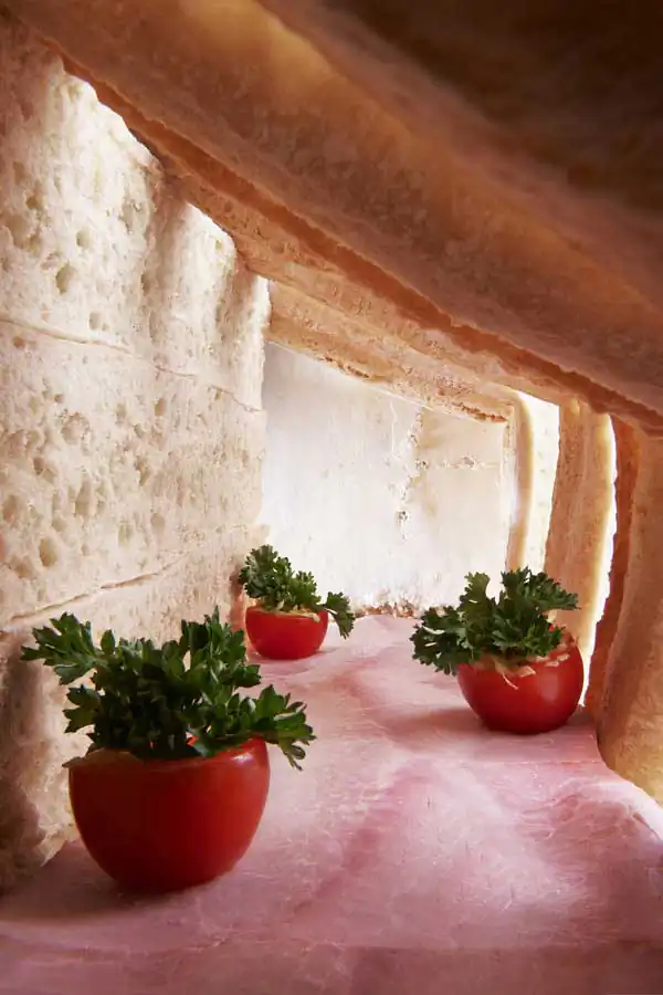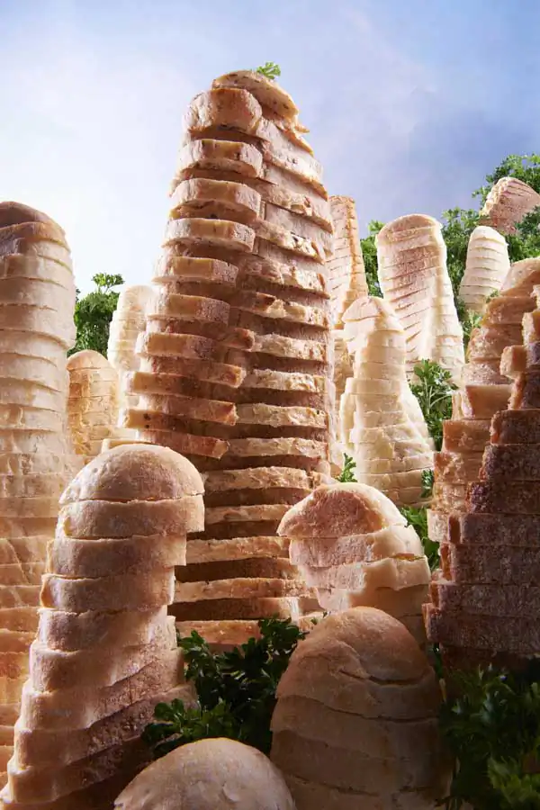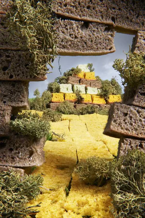 With the precious help of chef Olivier Gaillard, she imagined pictures almost exclusively built with bread from Bridor, who was a sponsor of the festival for the year 2012.
