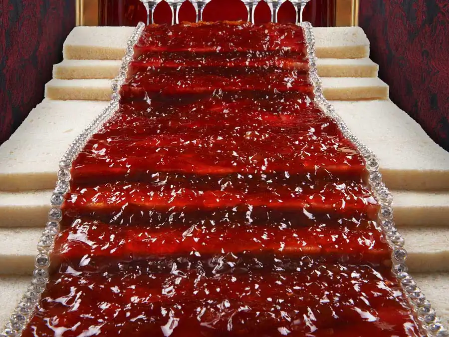 Working with Andresy’s jam on the theme luxury and celebration, the photographer creates sceneries in order to represent the world of celebration with some of its symbols : champagne, red carpet and evening dress.