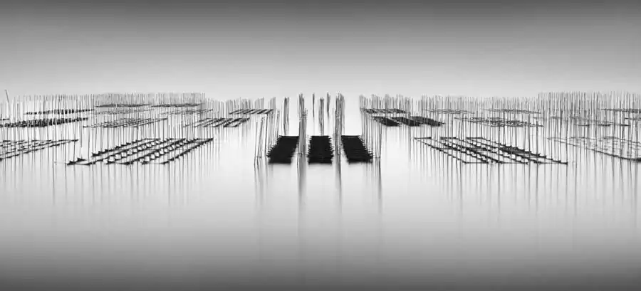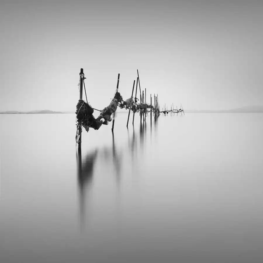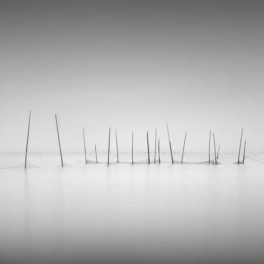 I had wanted to shoot the uniquely Japanese fishing and farming structures. I also wanted to do so in a more minimalist and graphic way than had been shot before. I brought waders with me and often spent time in the sea and lakes getting close to the structures to reveal their symmetry, asymmetry, dynamics and details When we were shooting the seaweed nets the farmers were collecting the seaweed and looking at me very strangely as I waded out in to the sea to shoot their nets and sticks. A policeman came along and we talked about what I was doing, he was very friendly as most people are in Japan and was fascinated when I showed him the images. I was touched by how helpful everybody was and even more so when I spent the last few days alone in Osaka.