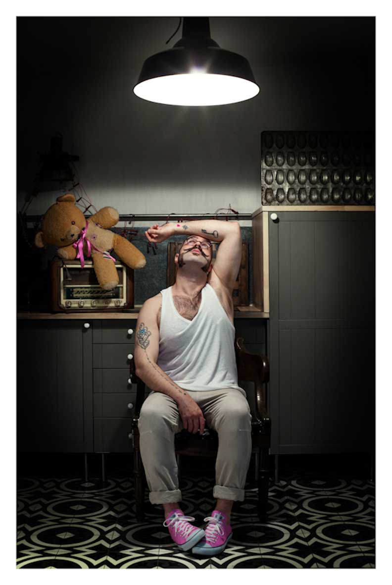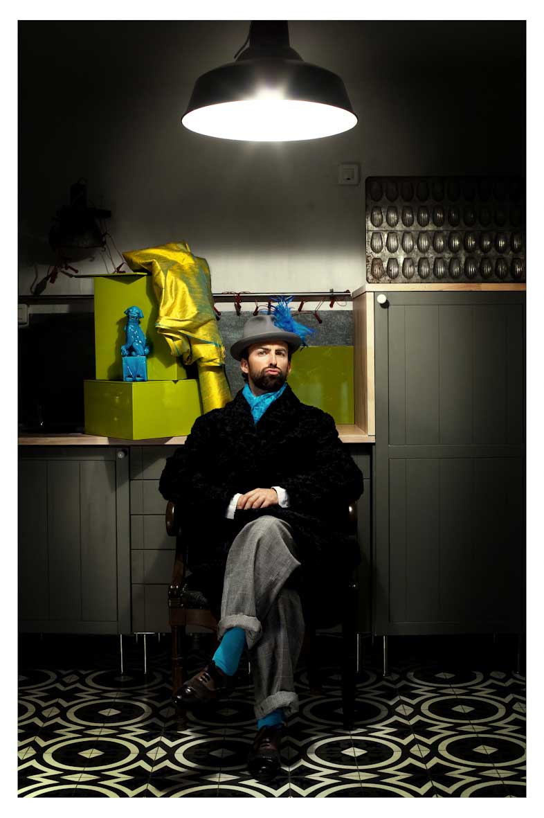 The purpose of Lagrange’s ongoing series ‘Sous la Lampe’ is an investigation. An intimate investigation that goes well beyond the form or face of the subject, it aims to glean a glance into the persona and emotive conditioning of the individual. The philosophy contained in the work is to illustrate a collector’s obsession with an object, it is the near criminal urge of these collectors to practice their acquisition which comes under the spotlight in these images. Lagrange’s work has always been heavily influenced by characterisation and the classic photographer’s dilemma of being in front or behind the lens. This aspect is what gives this series a powerful interactive atmosphere, instead of distance, he creates a feeling of real proximity which also stems from his choices of whom to photograph. He looks towards those persons who are meaningful to him and thus succeeds in bringing a autobiographical aspect to further illuminate the enquiry. The stage is occupied not only with the portrait, but the contents of their various personalities as collectors expressed through their objects and attire of choice. The photographer’s own kitchen acts as venue and further enhances the feeling of intimacy. The ‘reveal’ against such a dark backdrop is an almost antiquated tradition which comes alive in a contemporary fashion through Lagrange’s sensitive styling. Although the metaphor of placing them under the lamp is obvious, the fact that the set remains the same in each image creates a fascinating ‘spot-the-difference’ effect that makes the portrayal of the subject in this series so effective. Text by Louis Boshoff [Official Website]