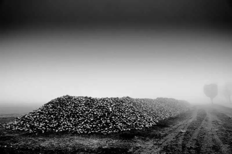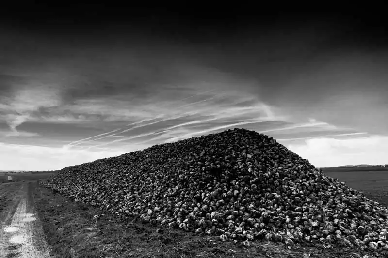 Vexin is situated in 40 km in the Northwest of Paris. It is an agricultural region which cultivates the beet. The sugar beet is used for the production of sugar, and secondarily alcohol and ethanol-fuel. In autumn takes place the harvest of beets. The harvest is very mechanized. The machine gathers beets in hills which take unreal forms in the light of the first colds. Here are the first photos of the series ” Vexin 2015 ” which will continue all year long.This work continues to develop my conception  of the photographic work: photography as contemplative mood.