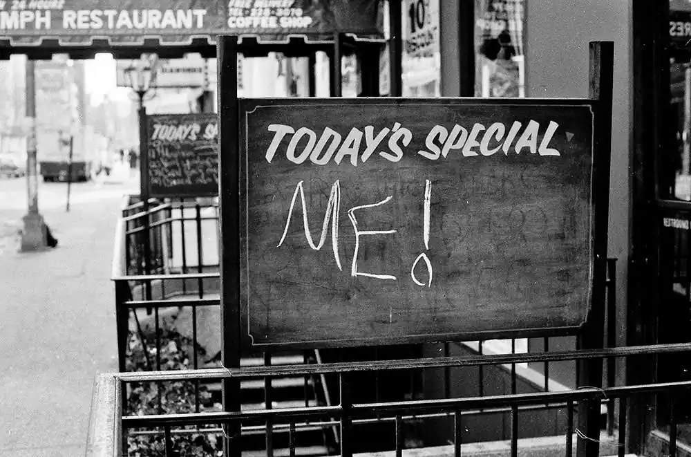 My main love has been b&w film, though I did shoot many color chromes in the past. To me, b&w is a bit more mysterious and abstract. It has more of a timeless feel. It’s more about the subject and composition because there’s no color to help the image. I still shoot b&w film almost exclusively. A friend once gave me a cheap digital compact and I use that for my color observations. I like the tactile, tangible aspect of film. I’m just more comfortable working with it. Perhaps I’m just stuck in the past. Personally, a digital image is a little too perfect. A bit sterile. I kind of dig the imperfections of film. Grain is good. Noise is bad. When putting together my photobook, Today’s Special, New York City Images 1969-2006, I made sure that the photos, the majority of which were shot in the 70s, 80s and 90s, actually looked like they were taken then. Just very minimal post processing of the files. I didn’t want them to look like they were taken by a high-res dslr.