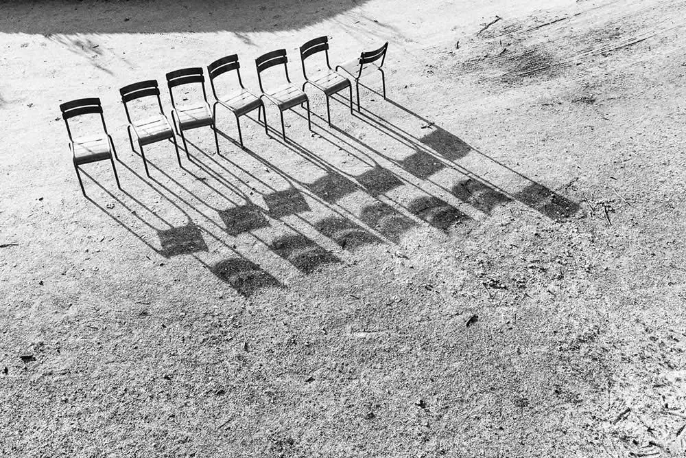 The chairs are scattered in small groups, ready to be reconfigured by the day’s visitors. But in the morning, before the tourists and residents arrive en masse, the chairs are sitting much as they were the night before. Absent humans, a curious thing happens — the chairs seem to be talking to each other. They have an air of implied conversation and intimacy as if they had absorbed the souls of the last conversations they witnessed and continued them over night.