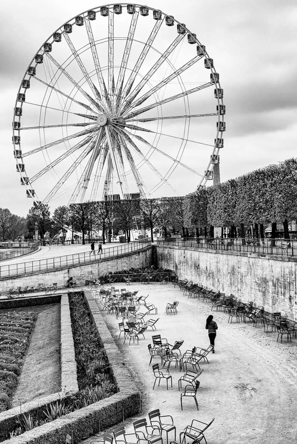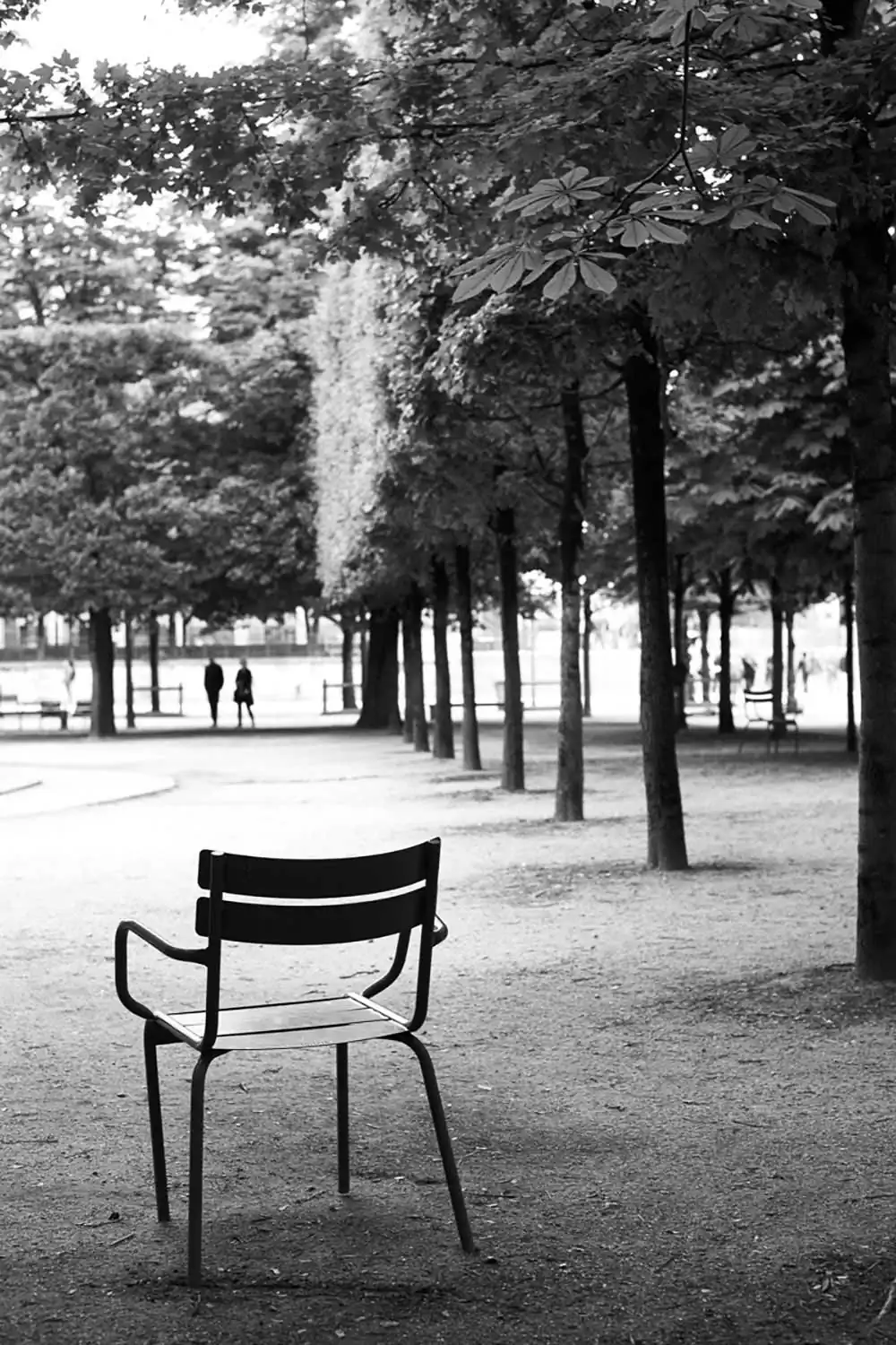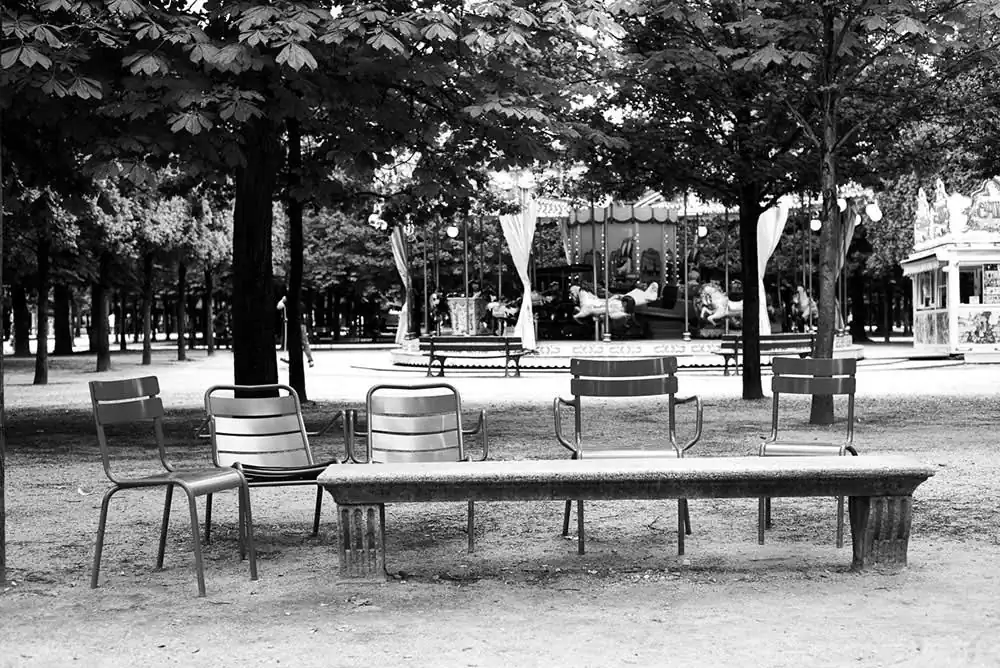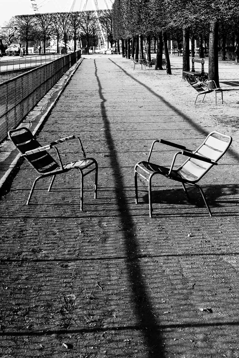 I am particularly fond of the chairs in the Jardin des Tuileries. Situated between the Louvre and Place de la Concorde, Tuileries is a favorite of both tourists and Parisians. Its central location and proximity to the photography exhibitions at the Jeu de Paume ensure that I pass through Tuileries on almost every visit to Paris.