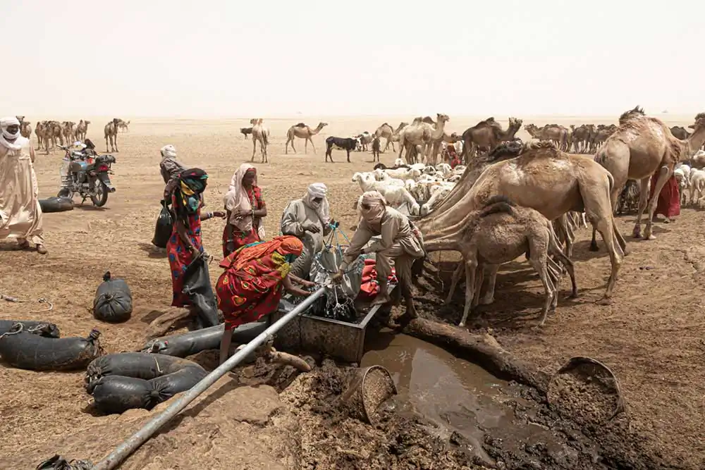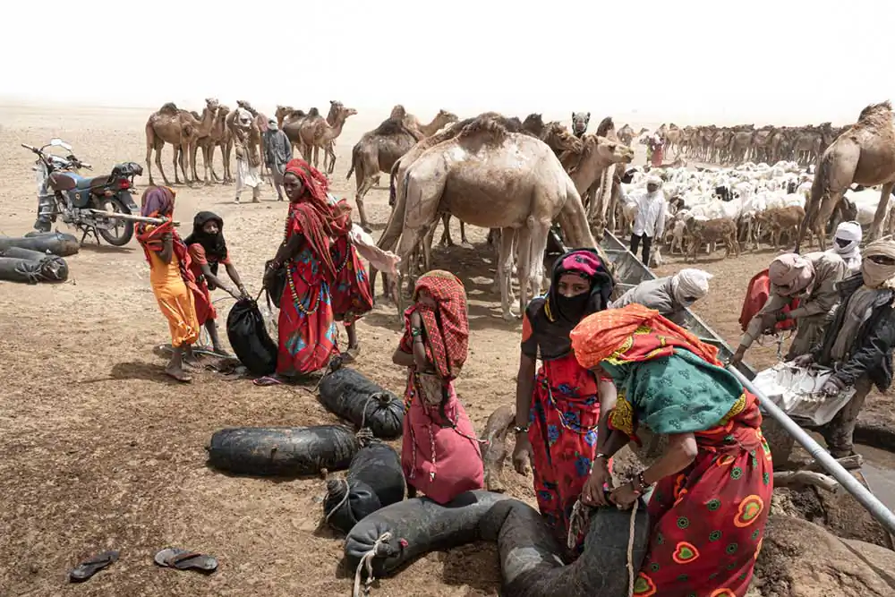 Along the way we come across some wells where they manage to stock up on the most precious treasure, water. They are moments of encounters, agreements, exchanges, a time to share that makes them accomplices and renews their determination to move forward, in this place of exultant beauty.