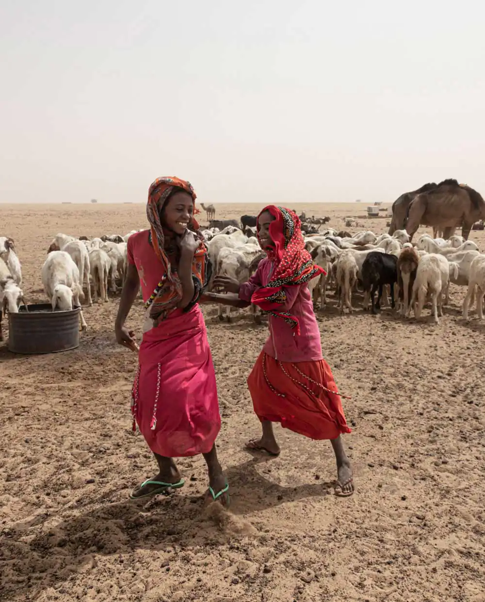 And so we shared our days not only with the Tubus, but also with the Buduma people and the Mbororo or Fulani in the Niergui refugee camp, near Mongo, where they treated us to songs and dances that emulated the Gerewol, the courtship ceremony. in which the man displays himself, made up and in his best clothes, before the woman, waiting to be chosen. We enjoyed the hospitality of the Dangaelat people in Korbo, where we were received by their king, guarded at all times by shamans and priestesses, and finally, as the end of our journey drew near, we were privileged to share a cup of tea. in a camp where, provisionally, several families of the Red Arab ethnic group had settled.