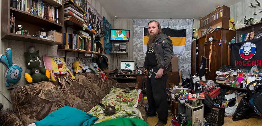 Many of them work at home, others are sponsored by their relatives. They are very different people, but they have one thing in common – they live in the Internet. Some of them have a lot of friends, but they communicate to them only online or in their homes. And some of them are just modern hermits. I took pictures of my heroes in their apartments, with their animals and with their favorite things. I asked every one of them “Why do you maintain such a lifestyle? ” Also, under every photo you can find the age of the person and you can find out how many years he or she doesn’t work officially. Now, most of the people depend on the Internet in one way or the other; and my heroes are an overacted version of the Internet addiction and social loneliness. I think that with the development of the Internet it is a very broad tendency, especially in large cities, where the pace of life is fast and where there are too many people and too much stress.