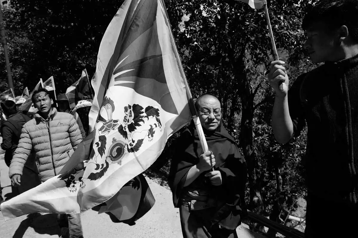 All through her march from McLeodganj to Dharamshala—about 11 kilometers—Rinzin and her friends were shouting China to evacuate Tibet, calling with hysteric frenzy the Chinese Government butcher and killer. Monks and Activists and Students and Tourists were all keeping pace with Rinzin, coming down the mountains through thick suburbs and occasional pines, sloganeering and gesticulating with the same fierce emotion that seems a bit out of place. Though on the 10th of March every year the same rally descends down to enact Tibet’s Uprising Day, asking for freedom from Chinese occupation, it clearly lacks in the piercing-power to bother any occupier—let alone a contemporary superpower.