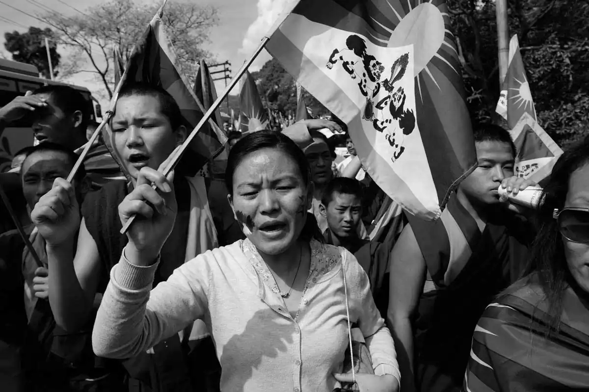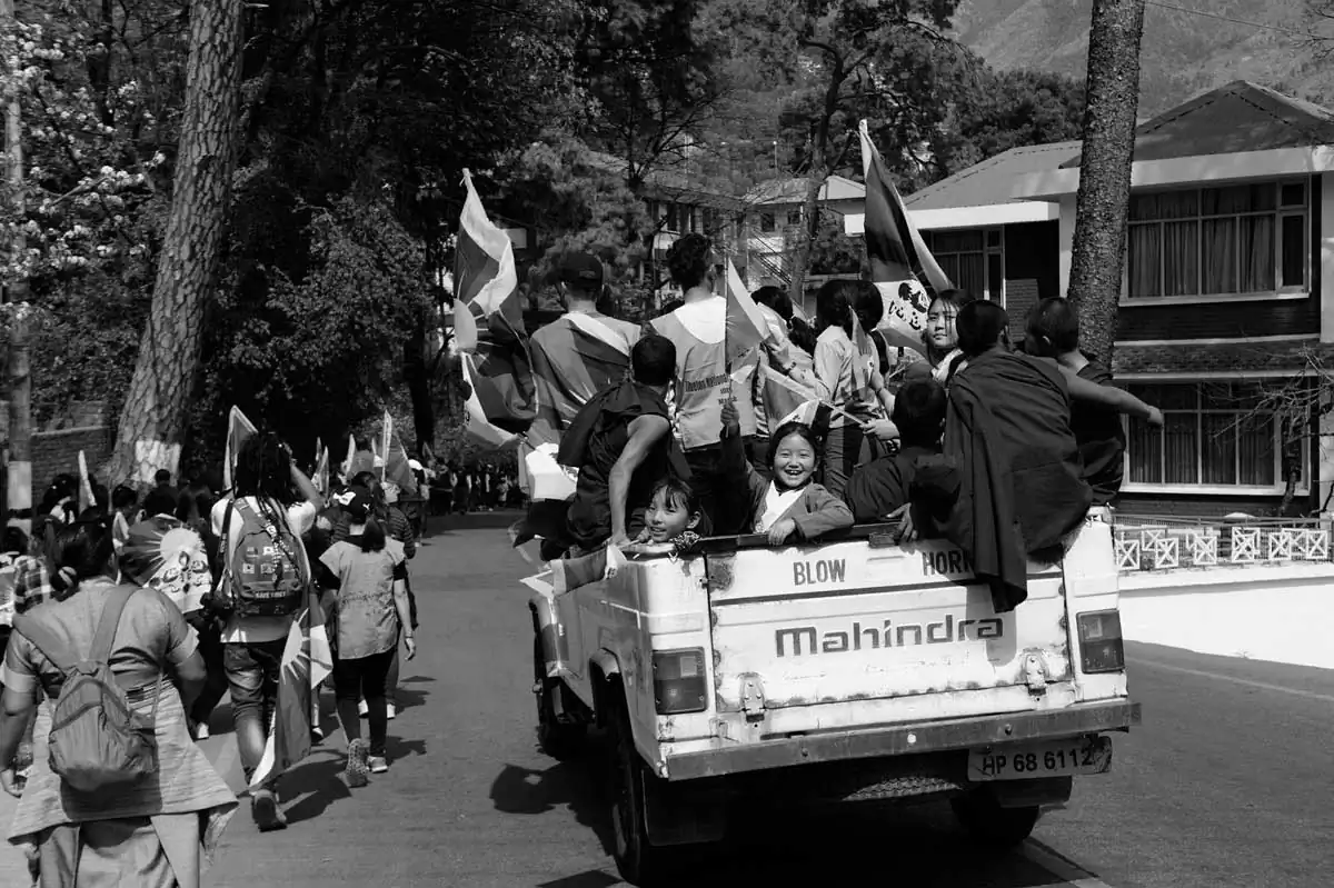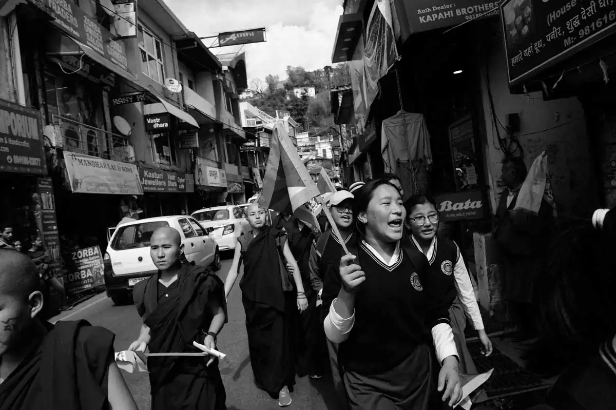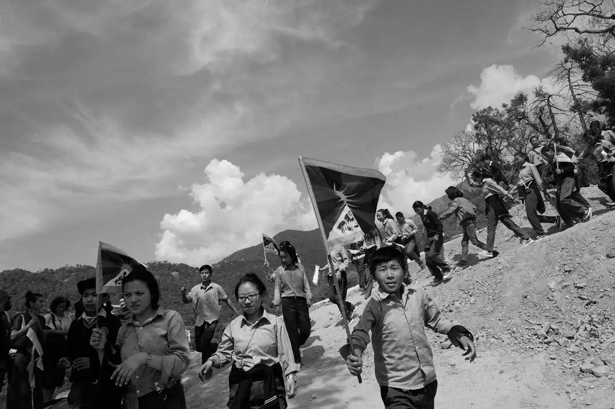Now for three generations they fought and flourished in several refugee camps in India, born and raised in a different political climate in which democracy is revered above all, whatever erratic its form is. But this doesn’t deter Rinzin from leading her classmates in a huge rally against a backdrop of big mountains where there is still snow.