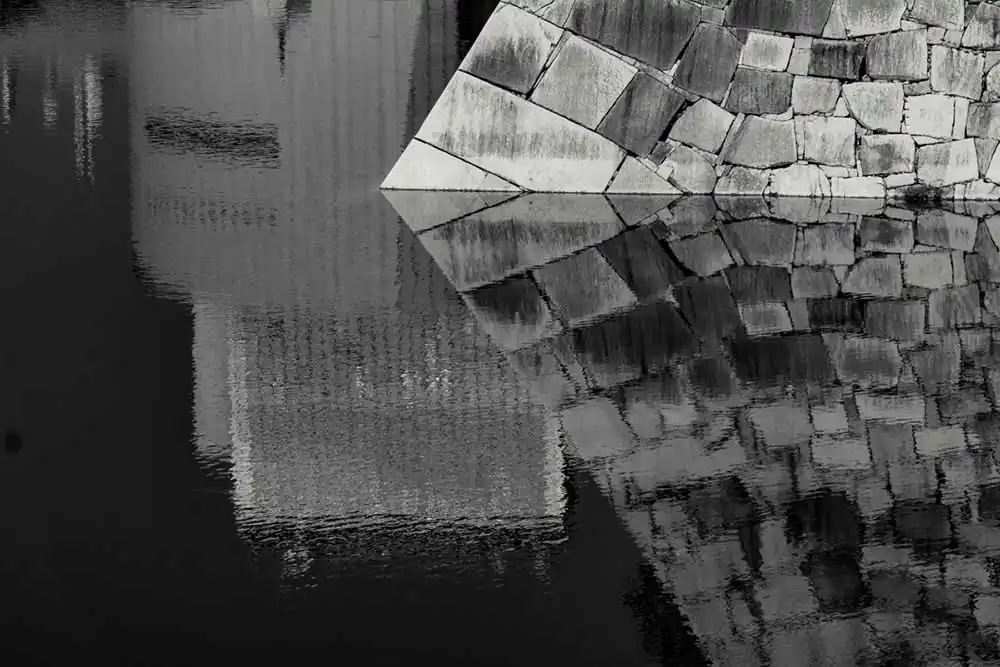 In contrast there are also moments of calm; gardens, bells, lamps from bygone times, trees rich in foliage create unexpected, asymmetric geometrical compositions. Andreas goes beyond the stereotypical documentation of monuments and tourist attractions and invites us to go deeper, to follow the aura of this country, to explore what makes it so “Japanese”. He lets us listen to the flow of this pulsating natural environment and follow the scents depicted as works of art in shades of black and white.