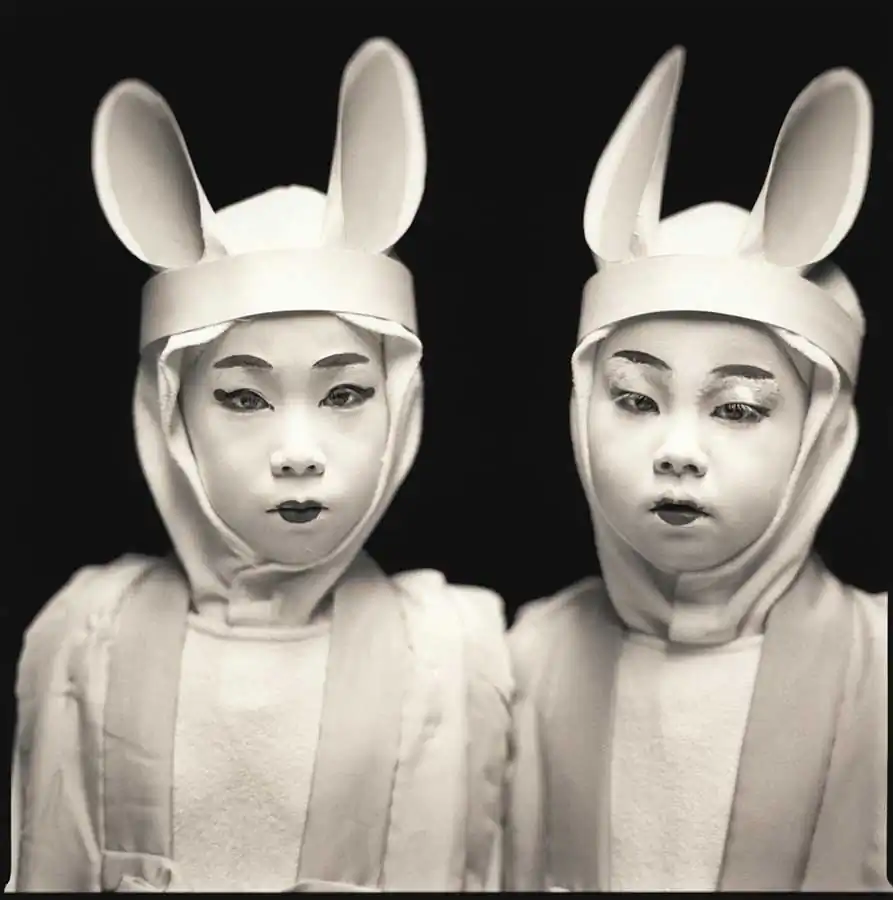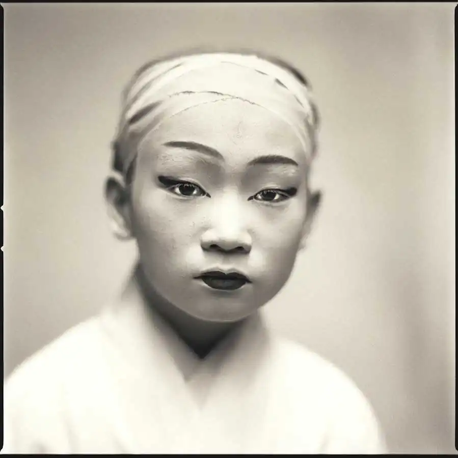 Those Kabuki players are hidden in heavy make-up and wardrobes in a made-up world. When they sit in front of the camera between plays, they are so much saturated (and worried) in their roles, that they pay very little attention to camera’s existence. They are struck with stage fright and they repeat their lines over and over while being photographed. Remember it is not what they do every day. On the other hand, they are not afraid as their faces are shielded by the heavy make-ups. They can be themselves without worrying about other people, as if they are in the masquerade. They feel that no one knows who he or she really is, or at least people know that they were in a fictional world. At those moments, they reveal inner themselves.