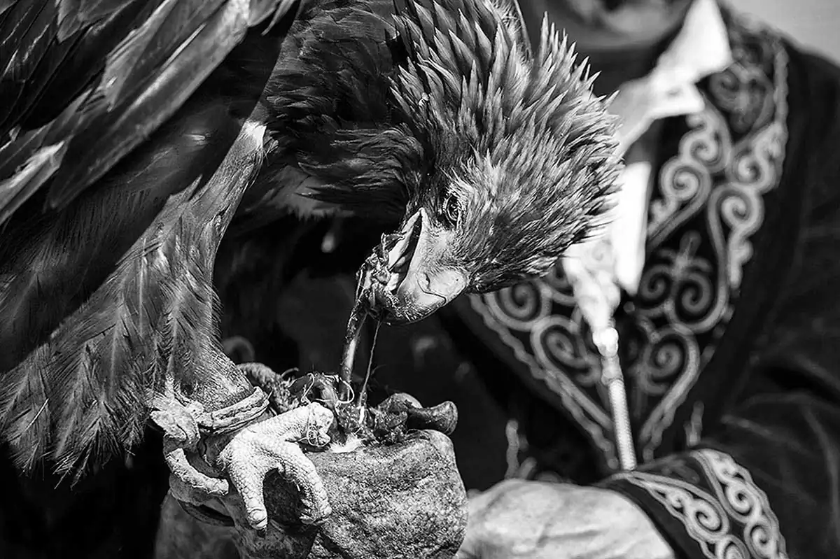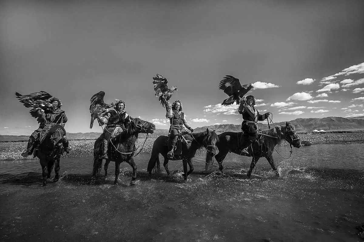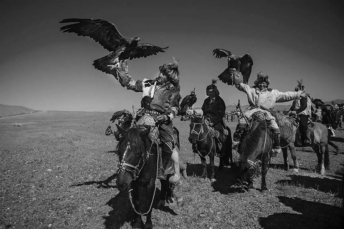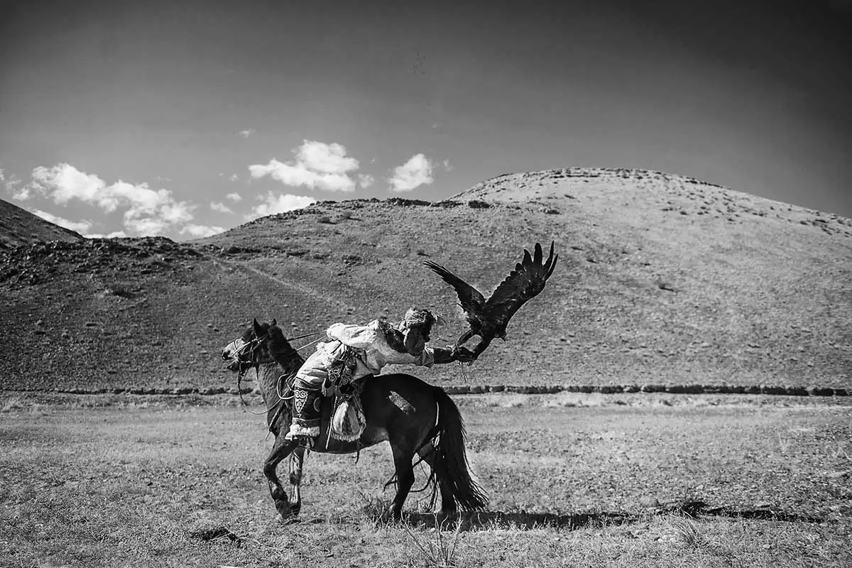 Mongolia is the home of the Kazakh golden eagle hunters. The Kazakh eagle hunters preserve the centuries-old tradition of riding with golden eagles to hunt for foxes, marmots and even wolves.