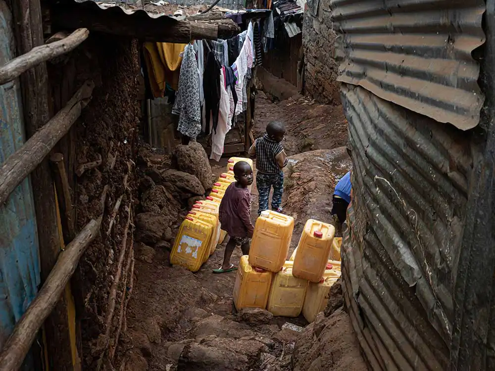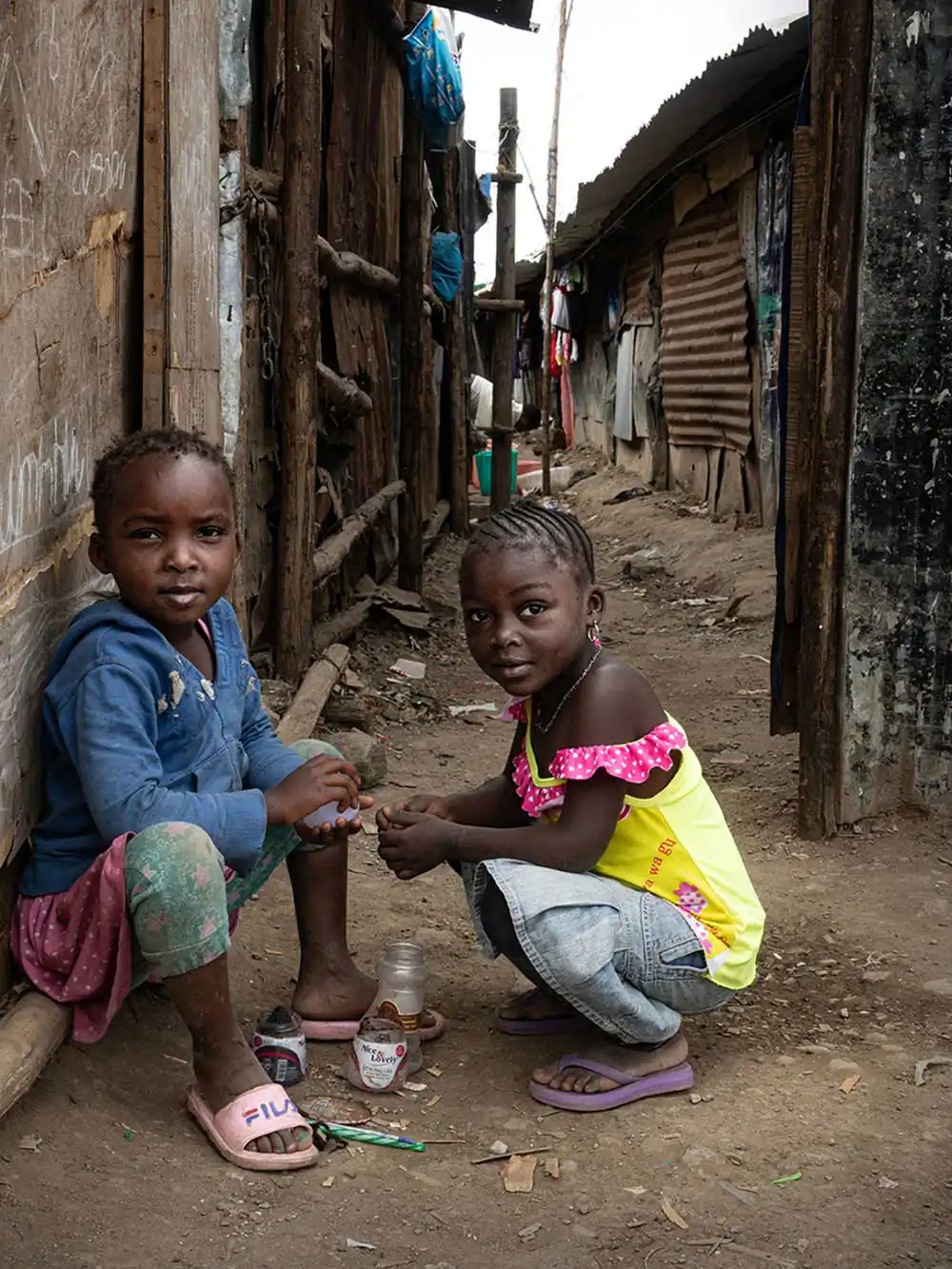At the same time, I watched as huge mountains of plastic drums piled up and I dreamed that torrential rains erased forever the traces of pain, that imperishable pain produced by hauling the heavy yellow drums to carry water. In my dream, the fragile backs of the children, the most vulnerable, no longer had to bear their burden. Women also walked haughty, since their hair, dancing in the wind, showed the colorful beads already released from the devastating weight. However, it is not a dream to say that, in spite of everything, life buzzes with joy among the huts built with veneers. Thus, I felt myself like anybody else there, participating in their struggle for a more dignified life, as it is reflected in the fascinating graffiti that permeates its streets with art and hope.