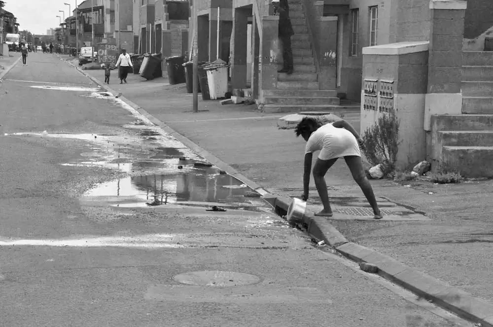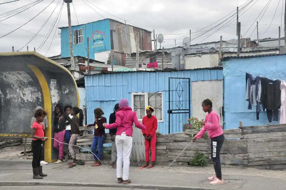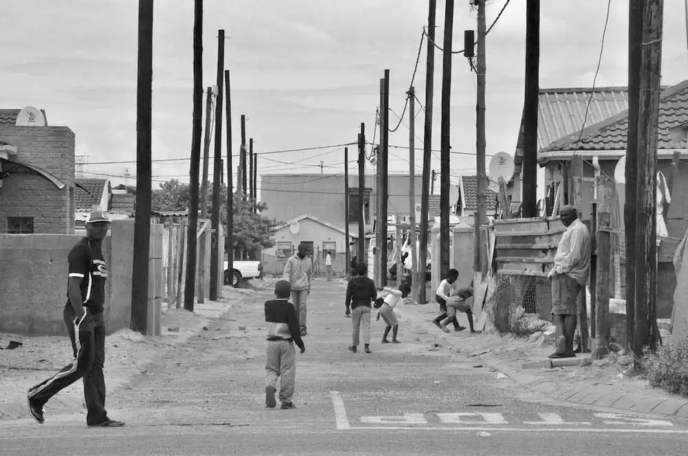 Today Khayelitsha has a population of 2.4 million (as of 2017), approximately 90.5% Black African, and runs a number of kilometers along the N2 Highway. Around 70% of residents still live in shacks and one in three people has to walk 200 meters or further to access water. Only a little over 50% of Khayelitsha’s total working age population is employed, and crime rates remain very high. And these issues persist despite infrastructure and welfare interventions.