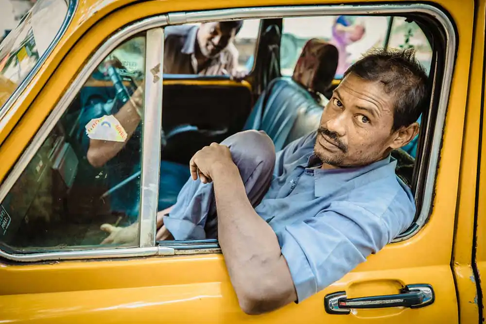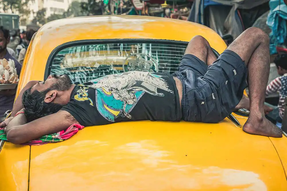 What caught my interest, besides the funny shape of the car, is the lives of the drivers. Most of the drivers come from an adjacent province called Bihar, known for its poverty. They take the 6 hour bus drive to the big city, and rent a car for a month, or longer. Since the rents are expensive, and they are here to make money, they work up to 20 hours a day, and longer if needed. Some of them sleep in the car, live in the car. In some parts of the world they call this “van life”, here they call it survival. Other drivers have a bed in a dorm, many of them sharing their bed with another cab driver and take turns sleeping.