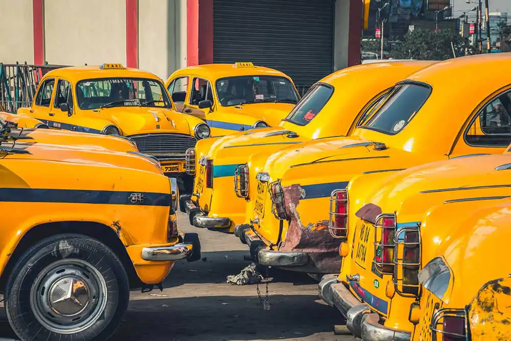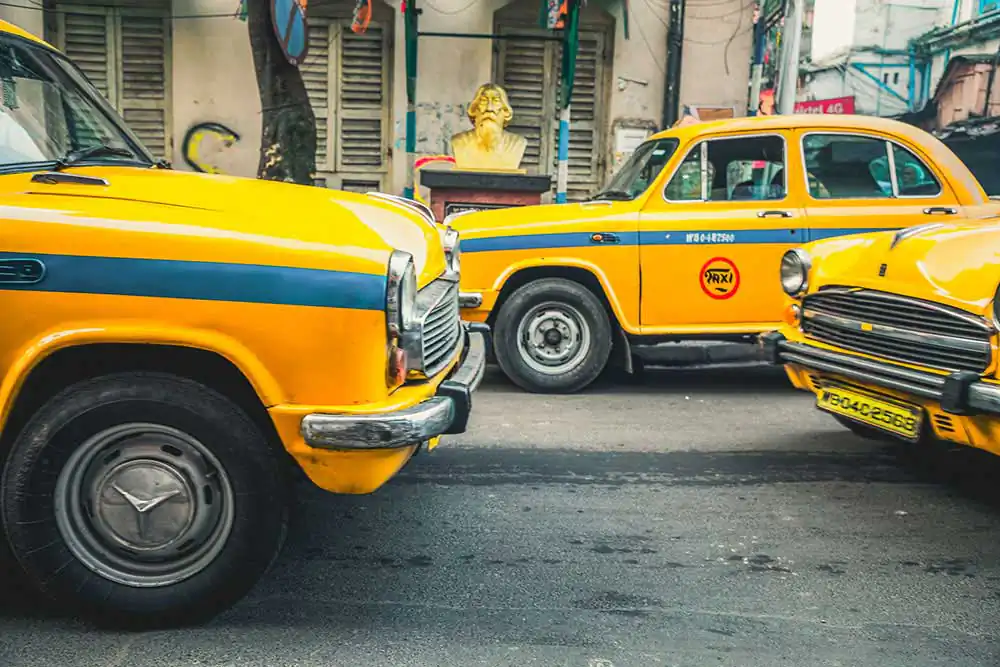 The moment you get outside of the airport in Kolkata, in the south eastern side of India, you are overwhelmed with never ending lines of the “Calcutta Yellow Cab”. Hundreds of cars are on the outside parking lot. Most of the drivers have been there “only 1 day, sir”, if they are lucky.