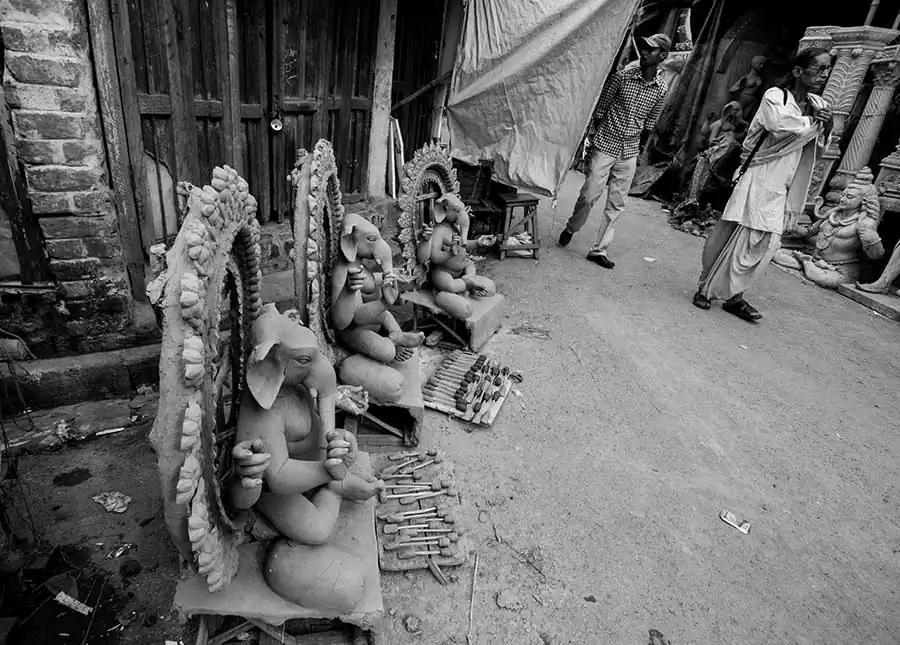 The history of Kumartuli is difficult to trace as there are several stories about the origins of the place .It is surmised that most of the potters from surrounding areas of Krishnanagar and Nadia district came here and settled down ,much before Durga Puja became a widely celebrated festival .While I do not want to delve into the history of the place, I would rather make a statement :Kumartuli is one such place which is a significant testament to the growing economic disparity in the city and more broadly the country .