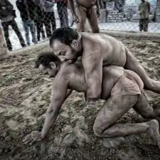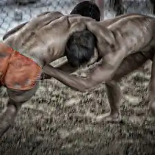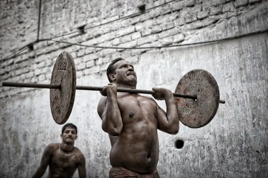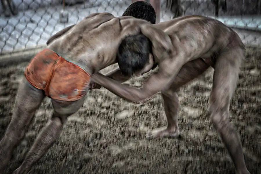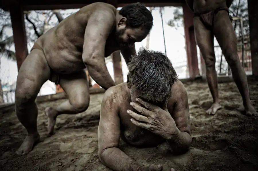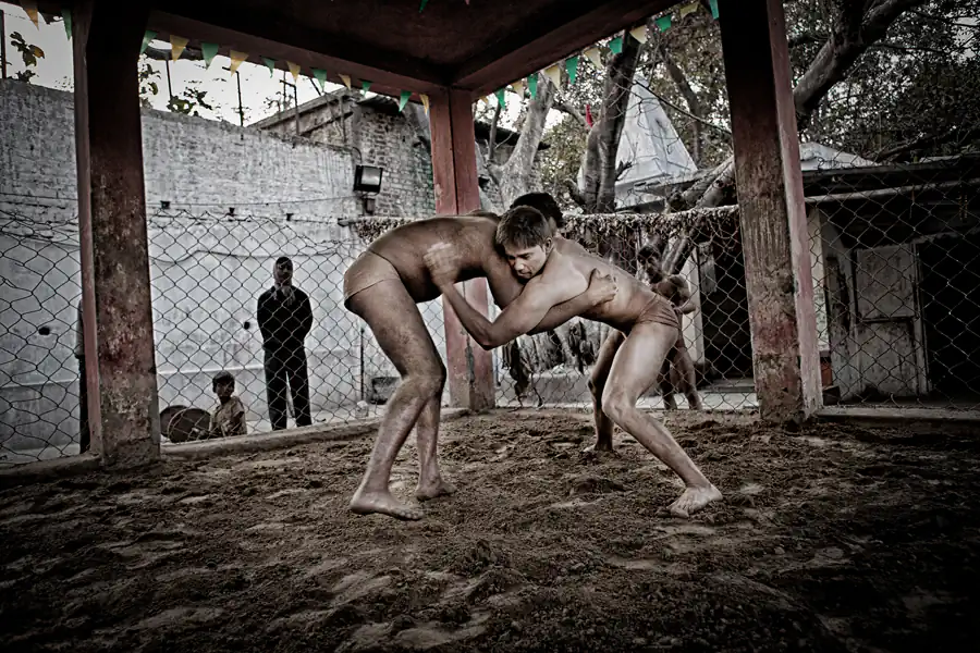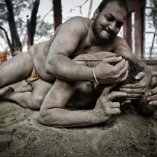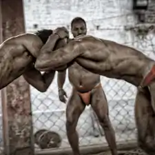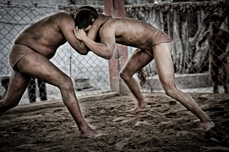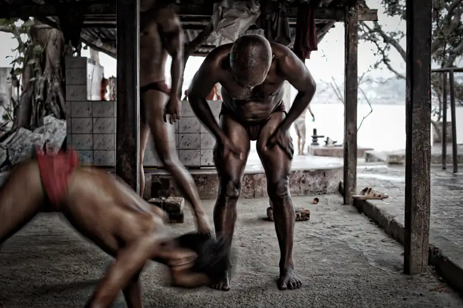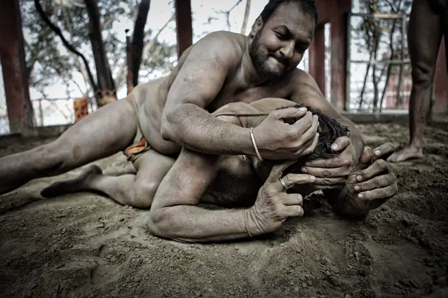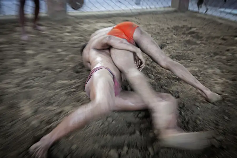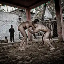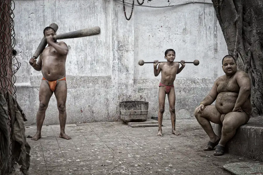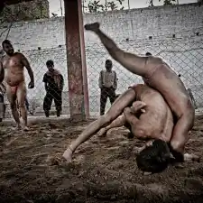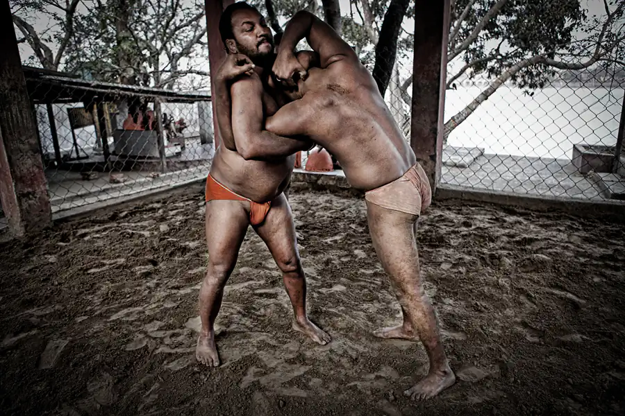 Kolkata, India: Kusthi is an ancient form of wrestling, three thousand years old.