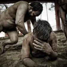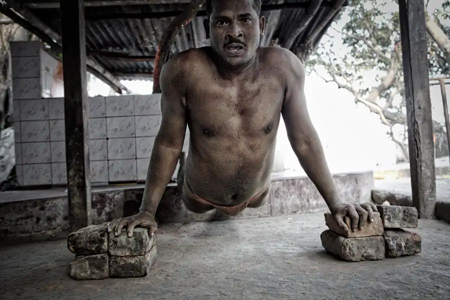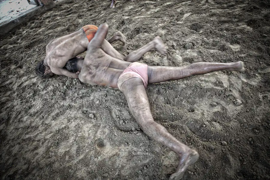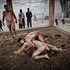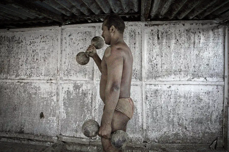 Fight clubs are rough, poor, “old school” style without new technologies, just training and sweat. And red arena, of course, because the wrestlers fight on sacred red soil. It’s a hard life: waking up at 3:30 am, six times a week and practicing more than 6 hours every day, these warriors lives together and their only belongings are a blanket, a few items of clothes and some books about the art of Kushti. They life is similar to holy men, like sadhu, infact they are no married and must dedicate the life to practice exercises. [Official Website]