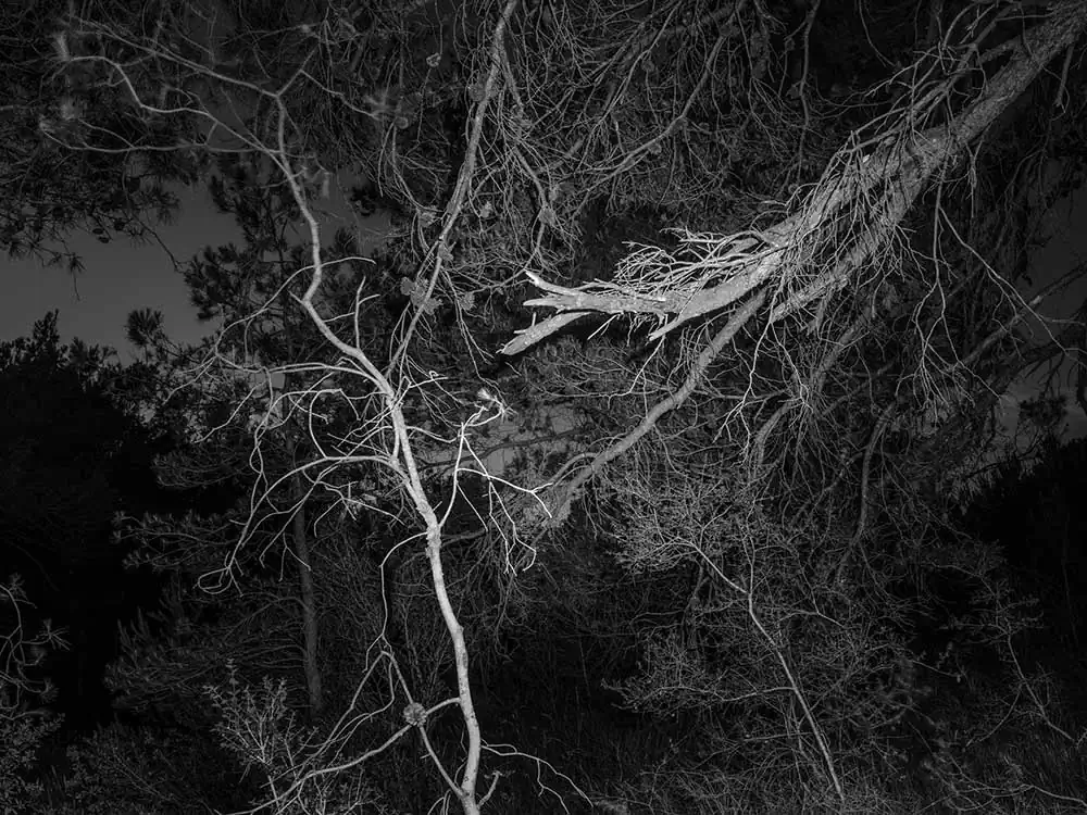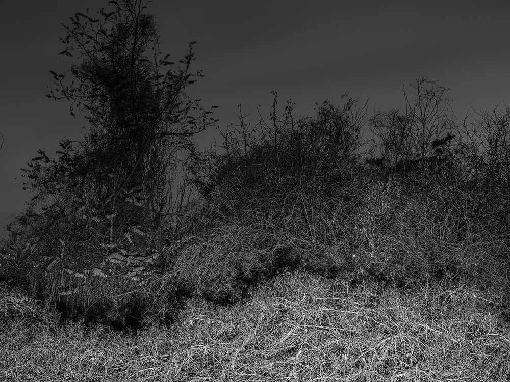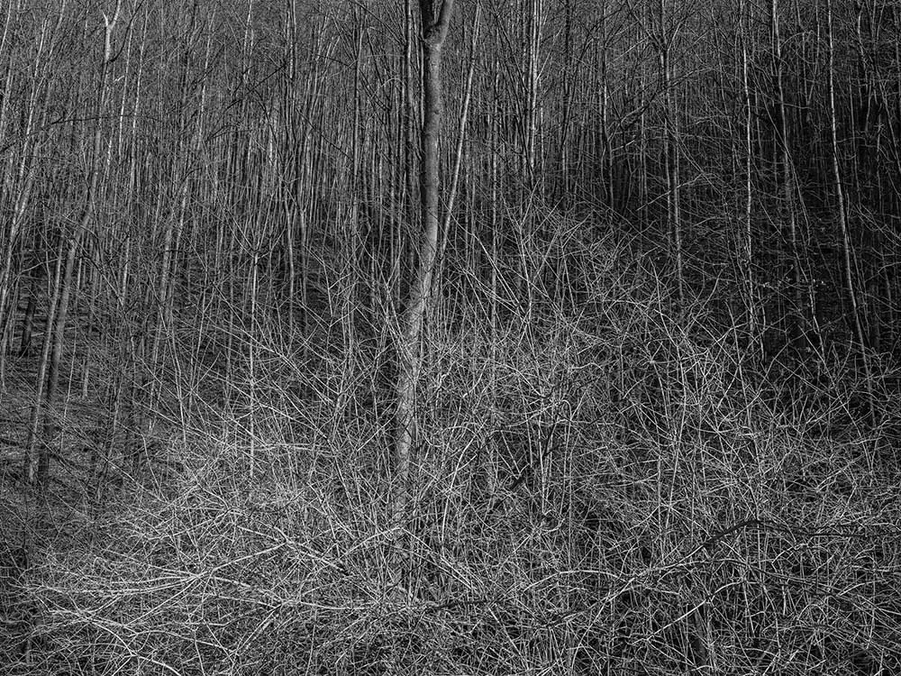 The original space of the landscape, where perhaps the key to understanding events and relationships was once more easily accessible, is now lost and forgotten for good, the bond is broken, the senses weakened. I stand in the landscape, in awe, overwhelmed by a superfluous and unreadable mass of sensations and information. I’m trying for a reduction leading in a direction where I haven’t gone yet. Ordo ab chao. Gentle and careful clearing in the hope of getting closer.