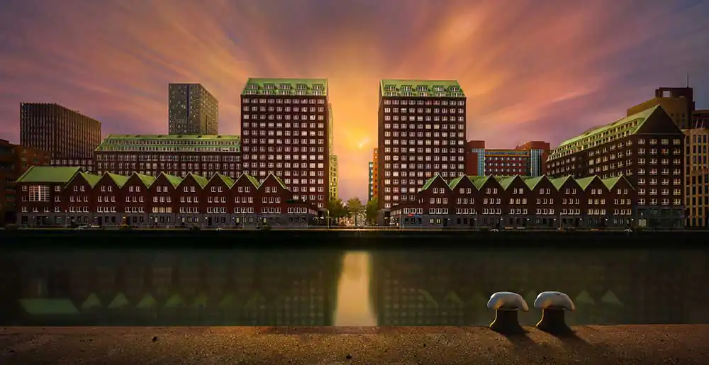 The photo ‘Spoorweghaven’ seems misfit in this collection. No nature! It was made in the greatest city of Holland: Rotterdam, close to where my roots are. It is a three shot panorama with a total exposure time of twenty minutes and heavily processed to express my visions.