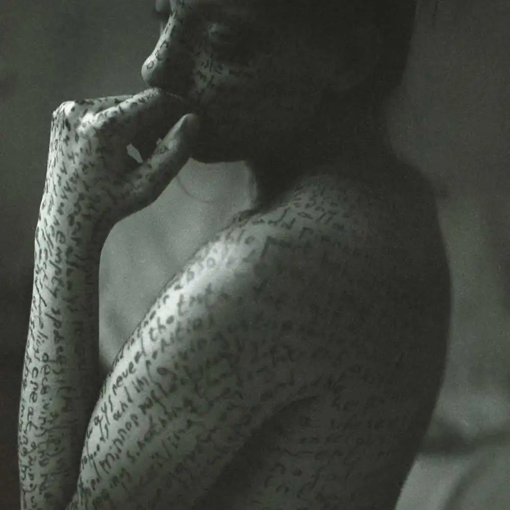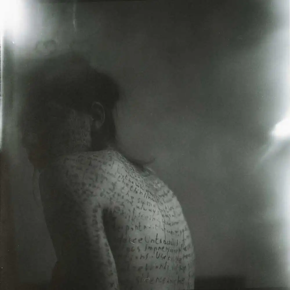 Empty pages of stories never written. Invisible but sensitive bruises that the body dresses. To evoke a lack, to suggest the absence. The words on our skin are the symbolic legacy of what life has left us inside. It is the infinite gravitational weight of silence that sediments in the depths of the soul. Overwhelming sense of void. Unbearable sidereal darkness born from the collapse of the firmament. The abyss of a night without dawn, concealed secret night, perceptible as shadow on black canvas.