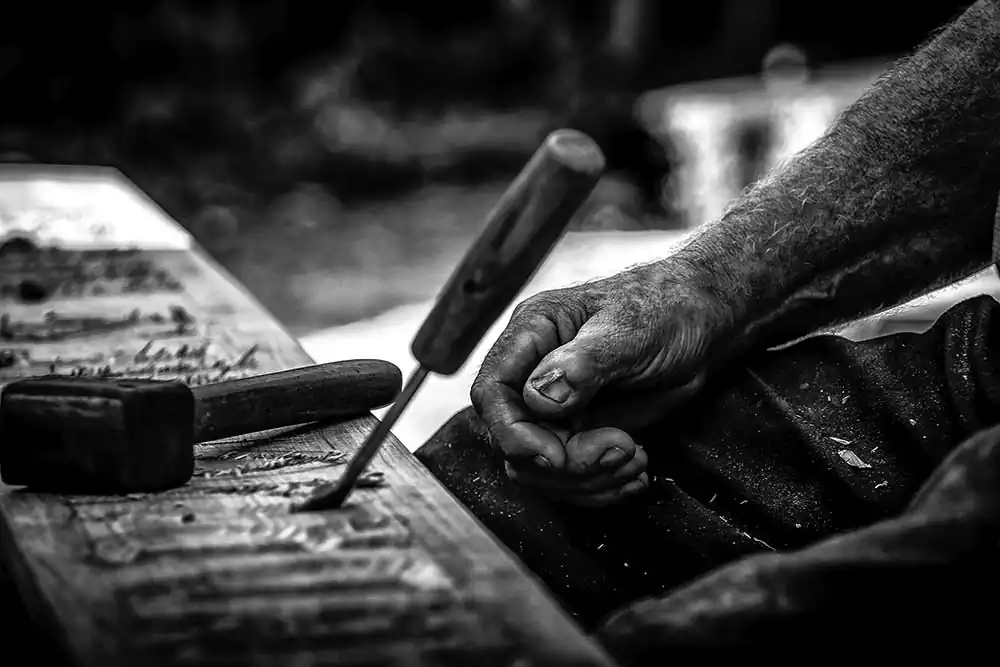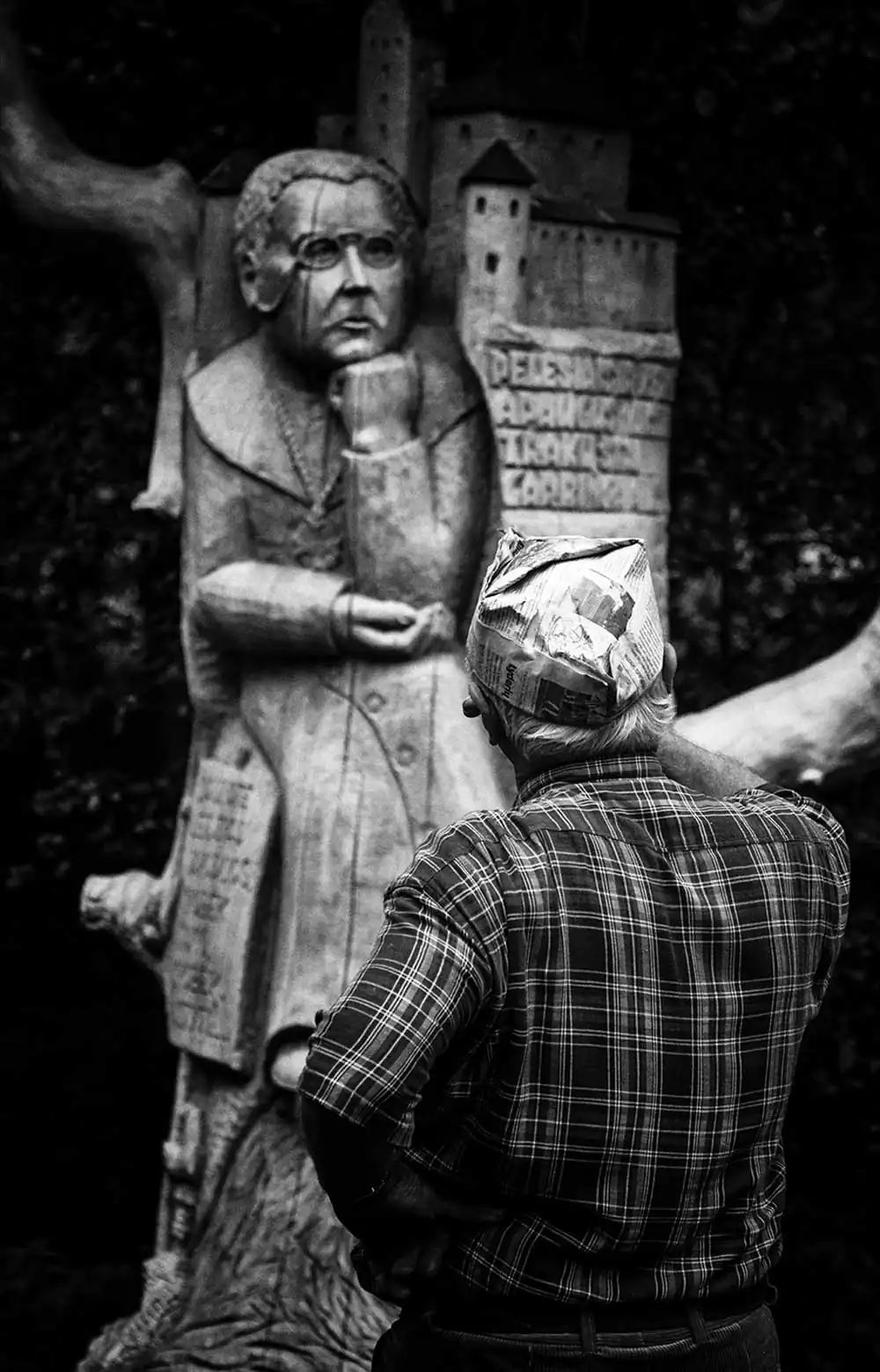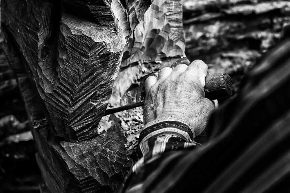 After the death of a person remains only what he created during his lifetime. Trees also are born and die. However, only people can extend the natural life of the tree. When the arm of creator touches the tree, the tree is reviving.Carefully hand of Antanas Cesnulis raises the tree and give him a new life. Wood warmth, comfort and strength are transmitted to a new personage or articles.
