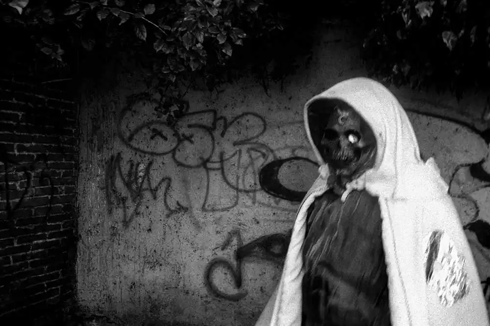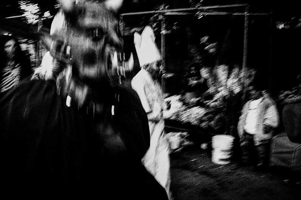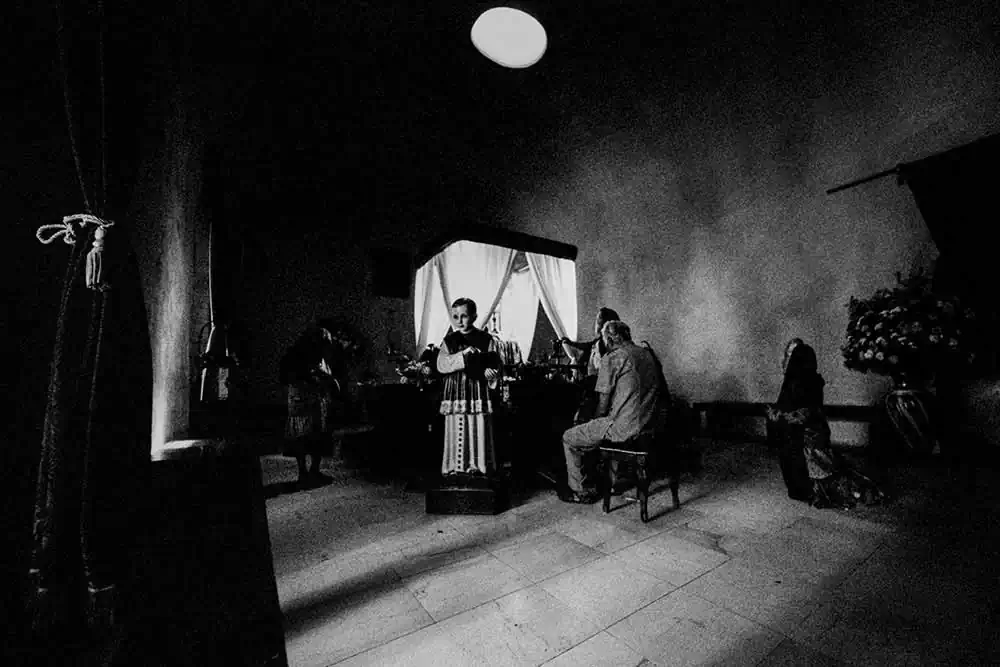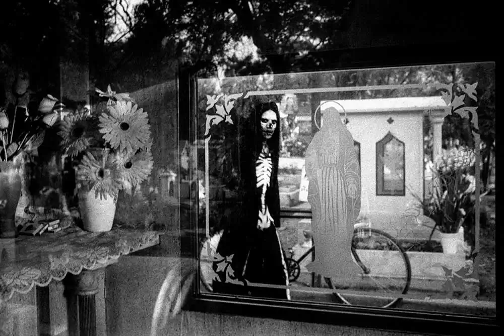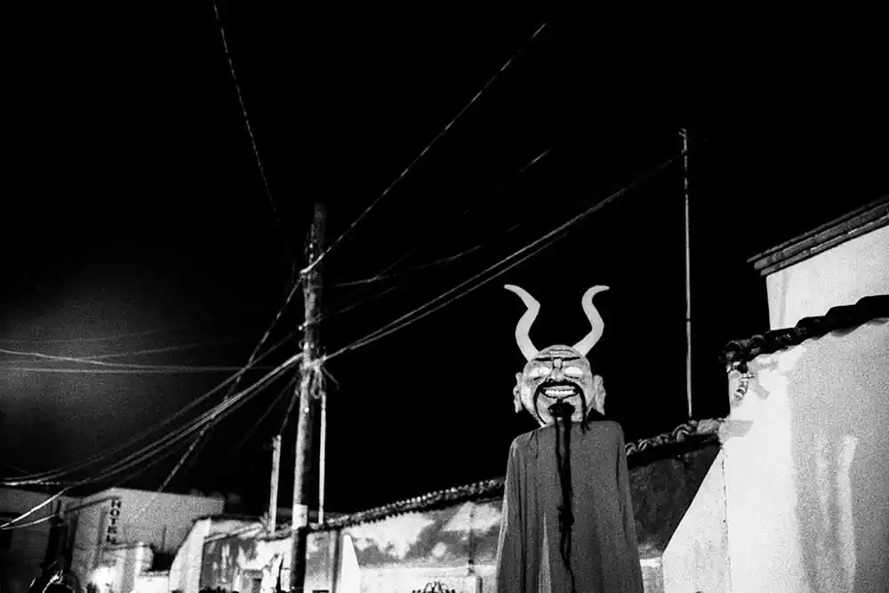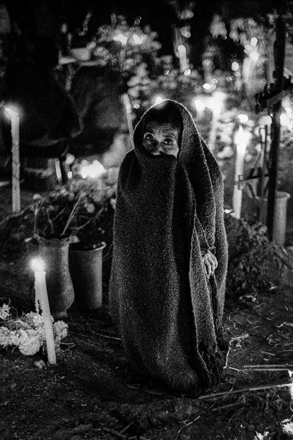 Praying seems to be the last of thoughts in Mexico, where mourning is exhibited with sounds, costumes, music, dances, colors but also with disturbing masks and presences as if to make fear and restlessness familiar and friendly.
