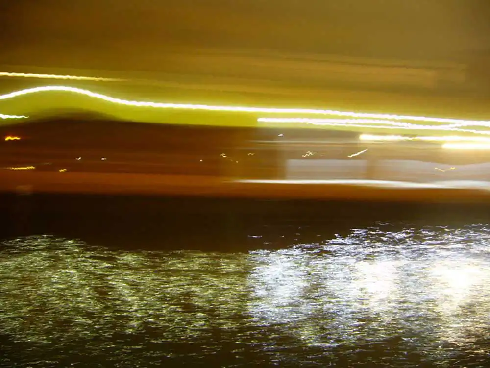 The artist’s predisposition, as previously stressed, towards “..shiny chromatisms, appearances in which matter is dissolved in the radiation of synthetic colors…”, his eurhythmic sensitivity, the musicality of the chromatic notes that he vibrates with harmonious mastery in each of his works and techniques, manifest themselves, in the selection of “water” panoramas presented in the exhibition, through silken, soft, warm and enveloping gradations, in which shaded areas are composed so that they melt like on the flat surface of a painting. In others, the light is cold, clear, with attractive crystallinity: especially in urban landscapes the buildings, the trees, the objects sometimes seem to serve only as a counterpoint, as a background for the appearance of light, a flaming medium and a dazzling white that floods, invades, envelops and contains everything. This light is artificial, absolute, disruptive, and reveals itself through the “negative” presence of the elements in the frame, which with their dense materiality restrain its spreading. In the most open and perspectival poses the distances and depths reproduce an electric and atmospheric “sfumato”: in the terse air, in a gradation of a thousand intensities of flares of different and subtle hues, it translates the great bundle of innumerable types and qualities of lumens of the brilliant and overloaded buzz of the contemporary world. In many works, graphic writings of shining trails engrave the scene, similar to dancing resonant traces of time: incandescent traits which, released from the reference to the factor that generated them, become signs of grace and abstract beauty; in others the soothing intimate shadow prevails in its envelopment, just modulated by slight glimmers. [Text: Sonia Arata] [Official Website]