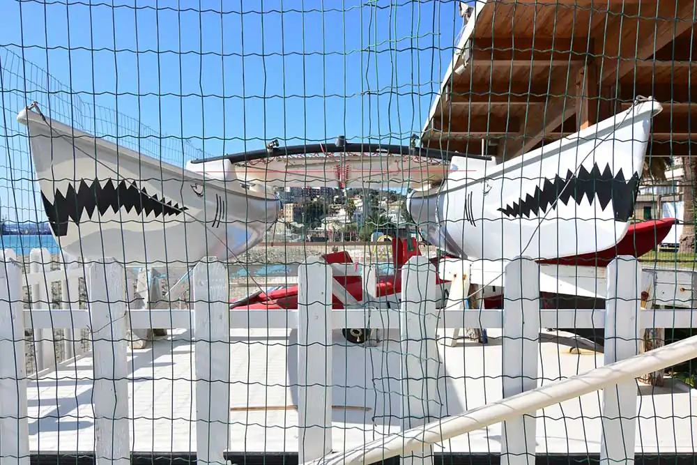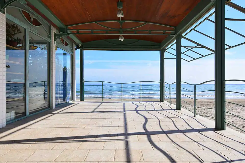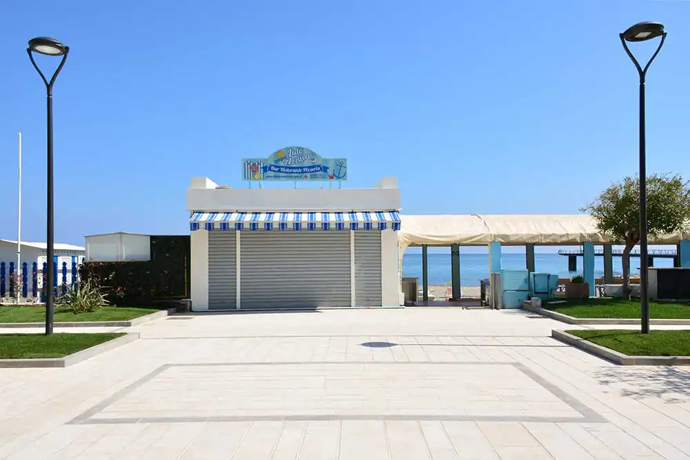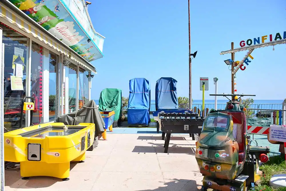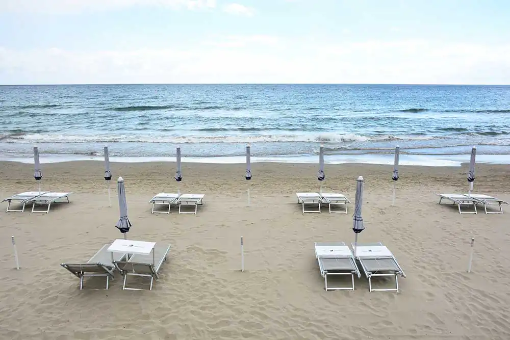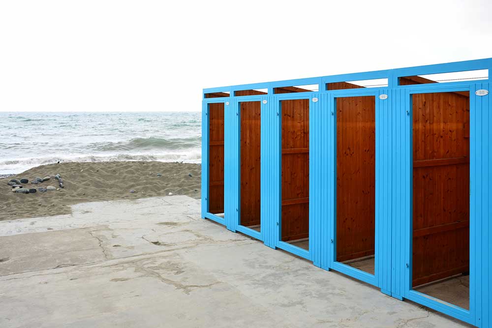 Then, there are the first (or last) traces of sunbeds and umbrellas arranged on the beach, which are nothing more than micro geometric backdrops contrasting with the sometimes not always calm sea. The striking images are also those of bars and kiosks that remain unlit stages of a show yet to be performed, allowing the mind to construct stories of all kinds.