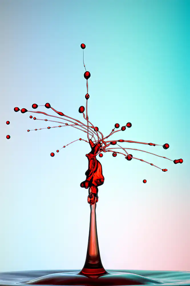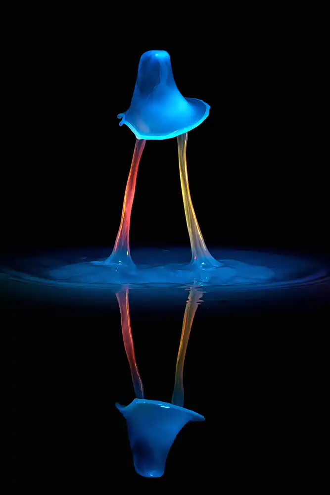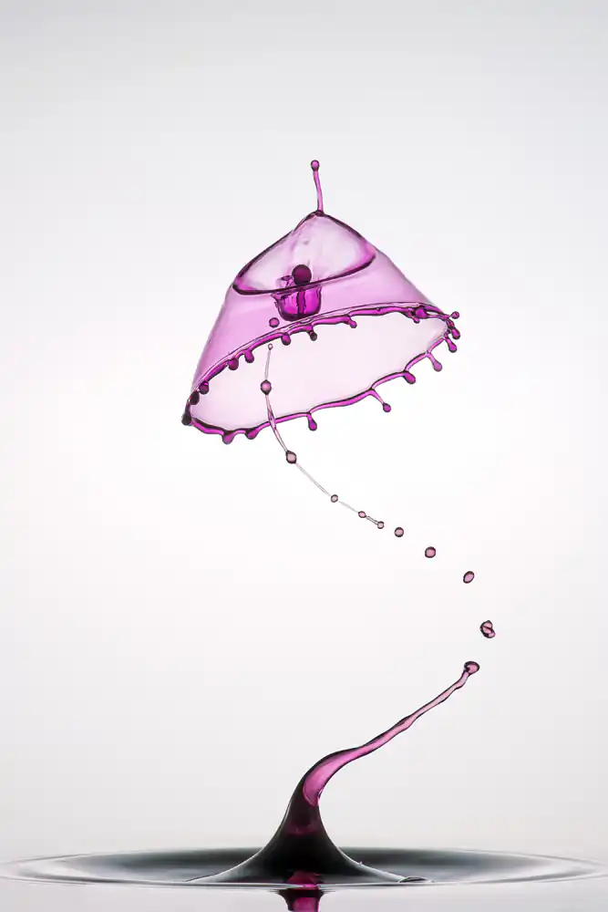 To get smooth shapes with less sprinkles around them, i increase the viscosity with guar gum. This will help a lot. It´s more work to mix the Water and filter the grain out, but the results worth the Work. A very important thing in this genre is the light. I take lots of care into this. Before i start dropping, i set the Light perfect. A good shape looks poor in nasty light. So take care about it!