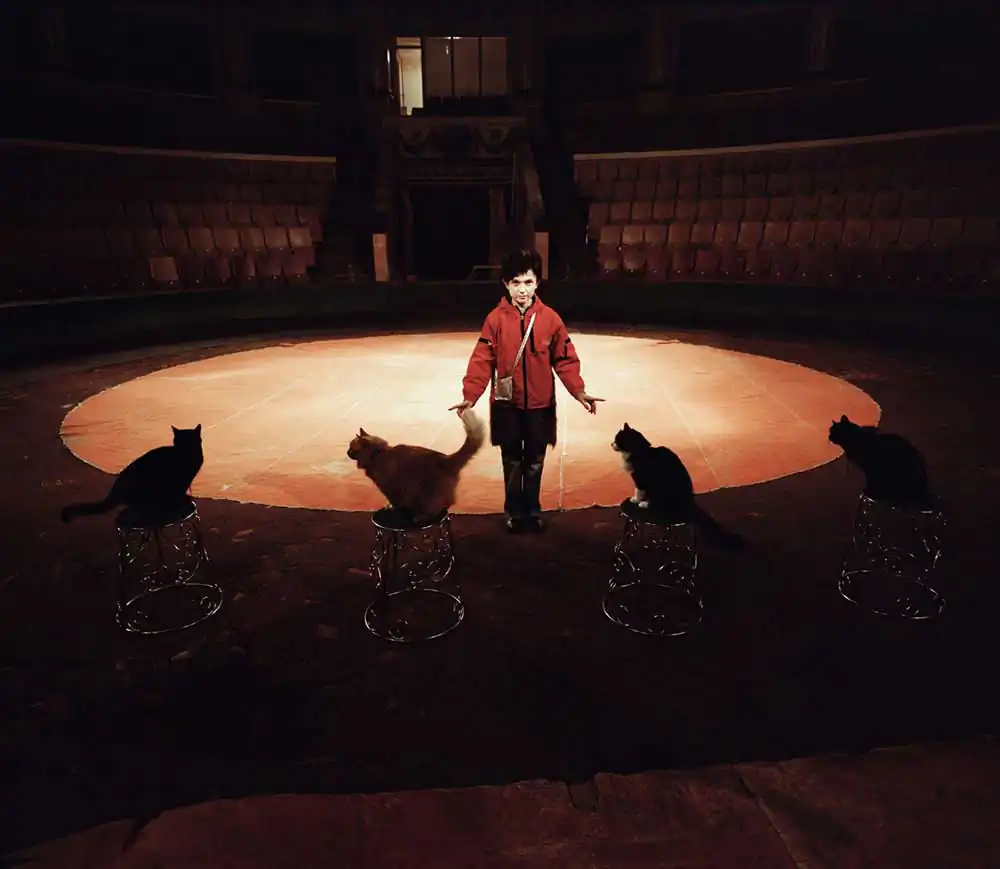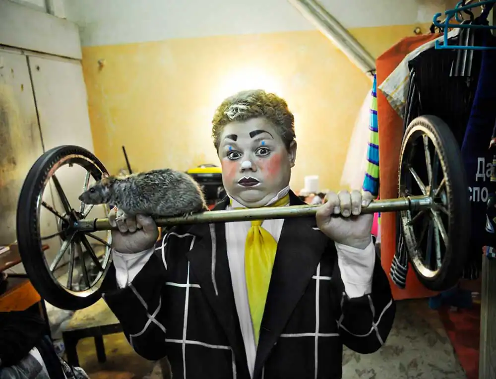 Cat trainer Olga Suslova invited me to her room and introduced me to one of her pets, which did not take its eyes off chunks of raw meat that she was cooking for the next performance. I was impressed. Olga, such a fragile, beautiful girl, was holding a large knife and cut a kilogram of fresh meat so fast, so artfully. She told me that work is her whole life. She is married, her husband has the same lifestyle. He is also a performer, but in a Chinese style circus. They have not had the opportunity to see each other for a long time due to their work and they are waiting for the day when they can be together at last. Still, not all the couples have such difficult circumstances. Many of them met and married while performing in the circus and live wonderfully, working for many years. All the life of little stars is in tours; their nights are in hotels. This special people have created their own world where they have found themselves. They are very happy little stars because they can shine for others.