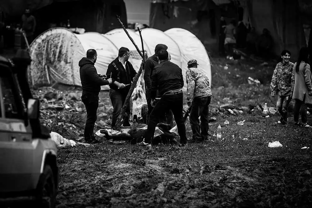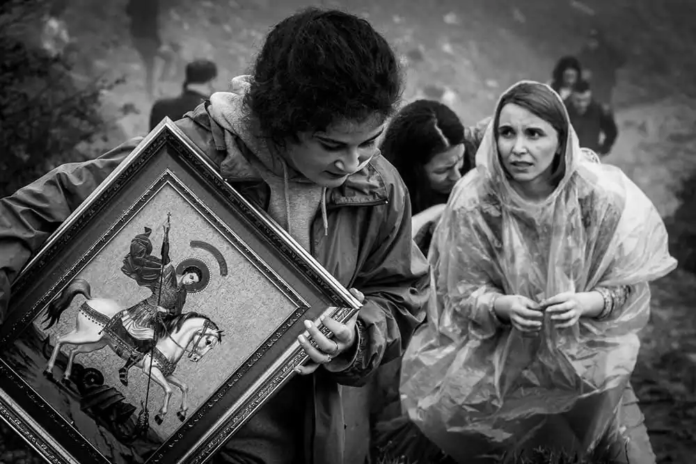 North, on the military road, about 100 km from Tbilisi, one finds the epicentre of a yearly manifestation of human faith. It takes place on the slopes the Caucus and is an ode to an arduous journey of shared history and religious devotion. It is the ultimate expression of tradition and a spectacle of the inherent need to marry belief with identity. This is “Lomisoba” – a feast of many meanings.
