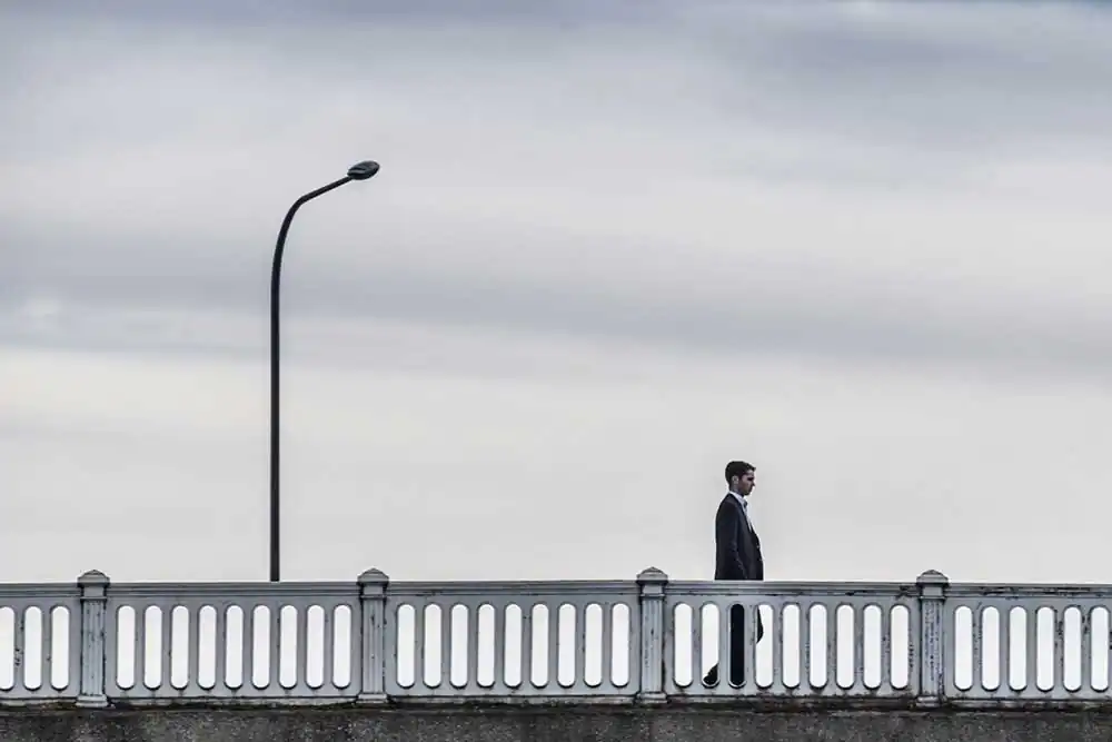Loneliness as a last exile, a last salvation, an absolute silence. Alone in their environment, these characters isolated in their space or in their dreams, find themselves suspended in time, no doubt in search of somewhere else. They impose their scale on the plans, a life proper to the lines and a verticality too! And they would doubtless be surprised at the importance of their visual weights in the geometric balance of the masses.