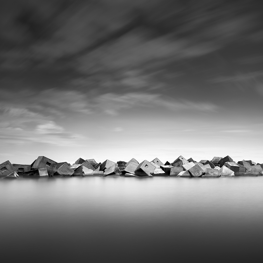 I aim to find smooth compositions, clean lines, and strong shapes. I use long exposures in my work to draw out the essential elements of a scene and I like to focus on the textures, shapes and forms. I work in black and white, which I think of as the first step away from reality. I see in black and white now, colour is just a distraction whereas black and white is an abstraction and that’s what attracts me to the monochrome format. I like to create moods in my landscapes such as serenity, solitude, melancholy, hope, wonder, or a combination of these. I make quite minimal compositions to give the viewer a space to get lost in and reflect for a moment. Flat and soft light are my preferred conditions, with fog and mist being particular favourites. It is in this weather I can work the tones to create the contrasts I need for my images.