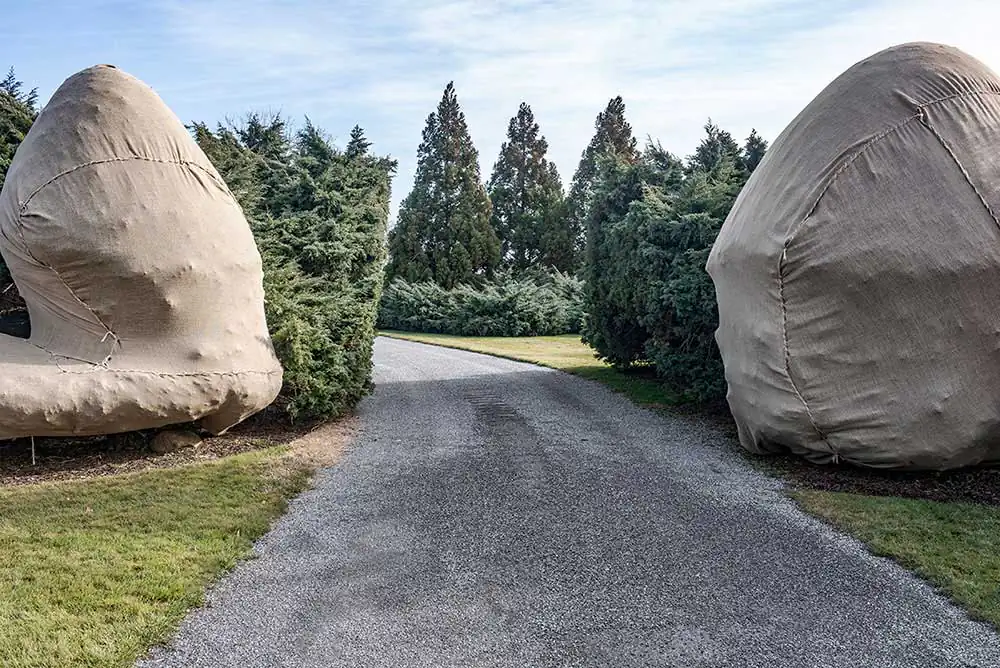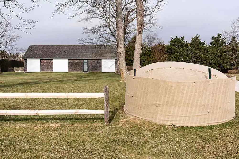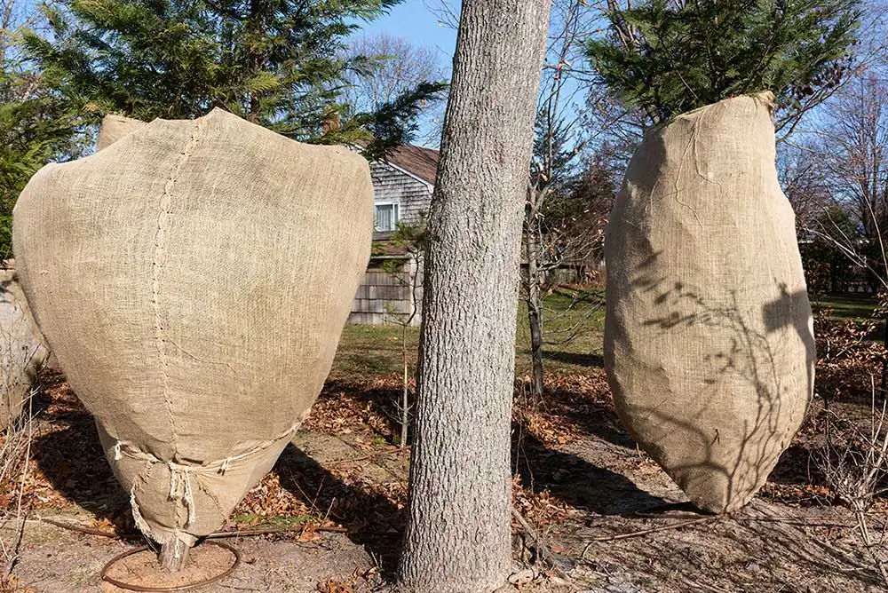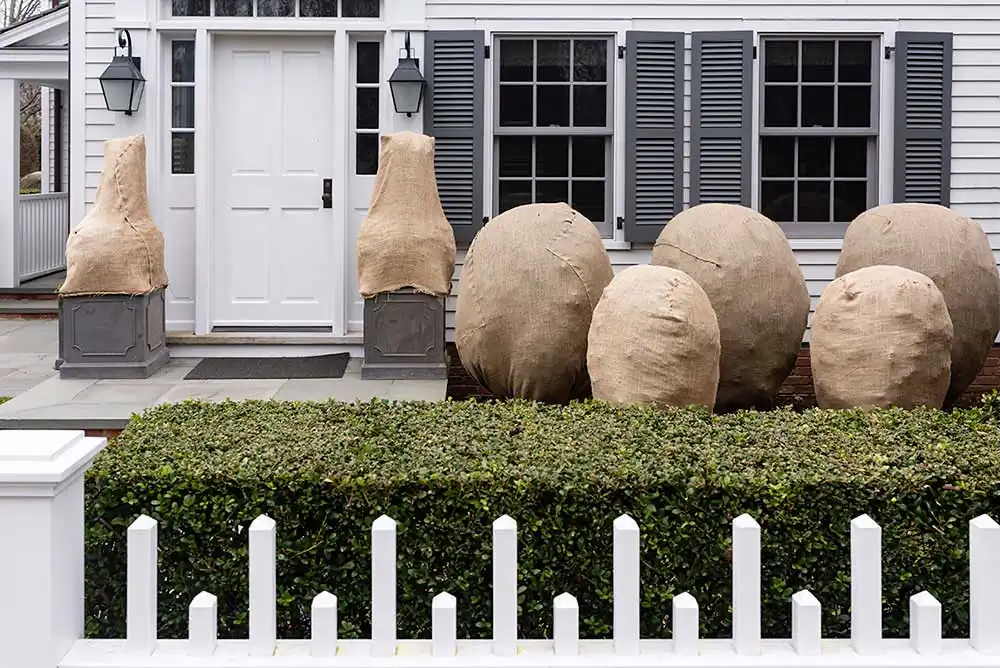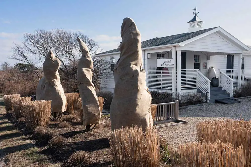 When we arrived in East Hampton, we were greeted with beautiful clear winter skies, no crowds and a chance to relax. As we were settling into the pleasant 1950’s cottage, I grabbed my camera and walked into town to gather some essentials. As I walked, I passed a neighboring house with a row of hedges edging the front yard. The hedges were wrapped in burlap, and intricately stitched together.