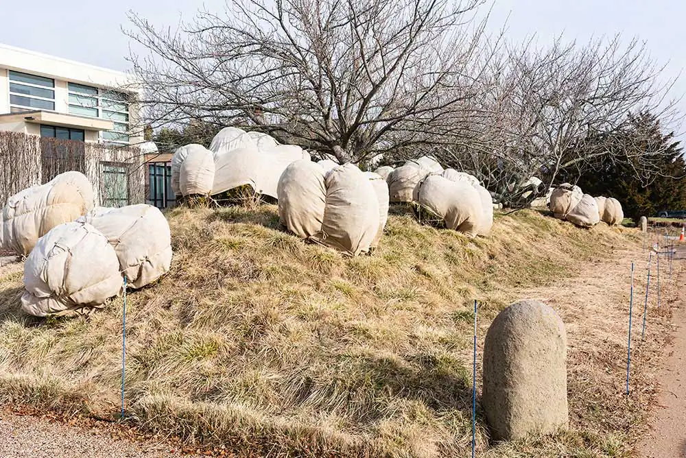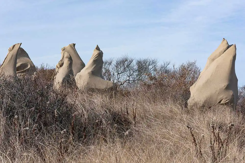 I took the first image, of what was to become a portfolio, of wrapped plants. During the next seven days, we traveled the back roads to Sag Harbor, Bridgehampton, Wainscott, Amagansett, Springs, Sagaponack and Montauk…all the while stopping and photographing the wrapped plants of the East End. These iconic plants – wrapped in their burlap blankets – were like winter sentinels. They stood guard against the elements in small clusters and sprawling expanses – always vigilant and unwavering. They were stalwart against the winter winds.