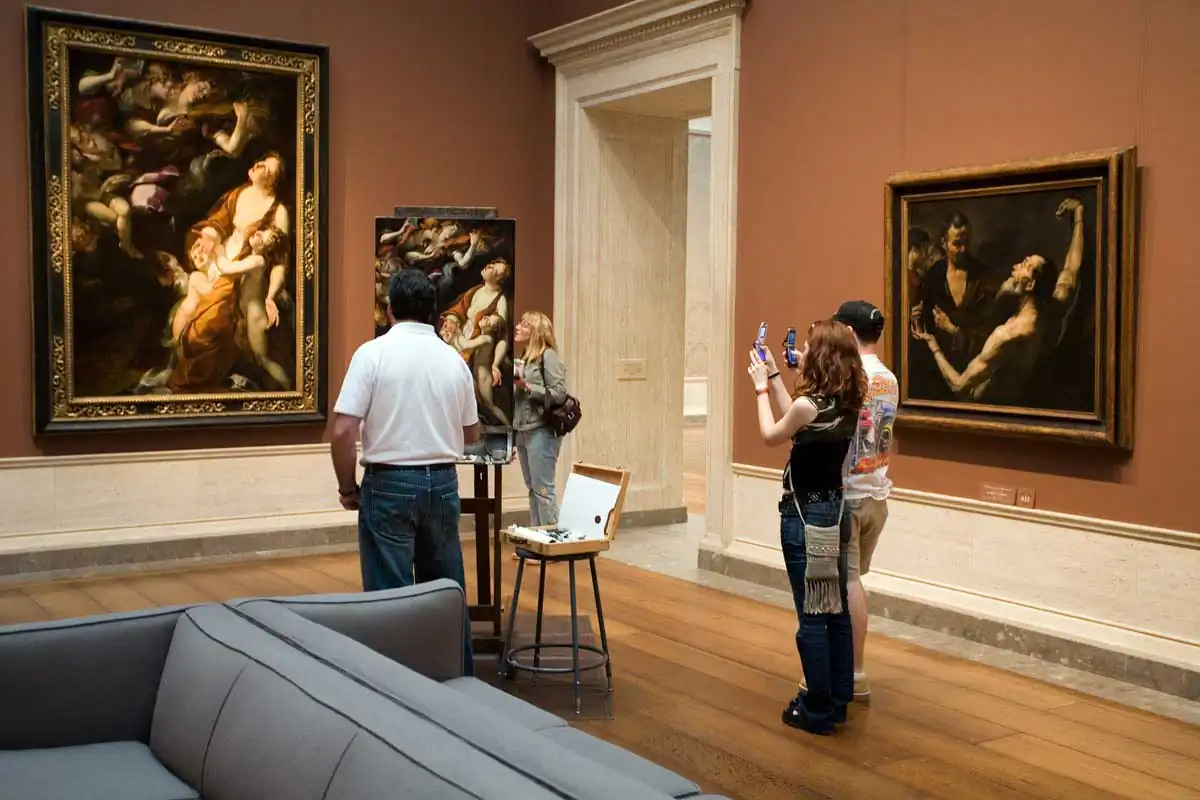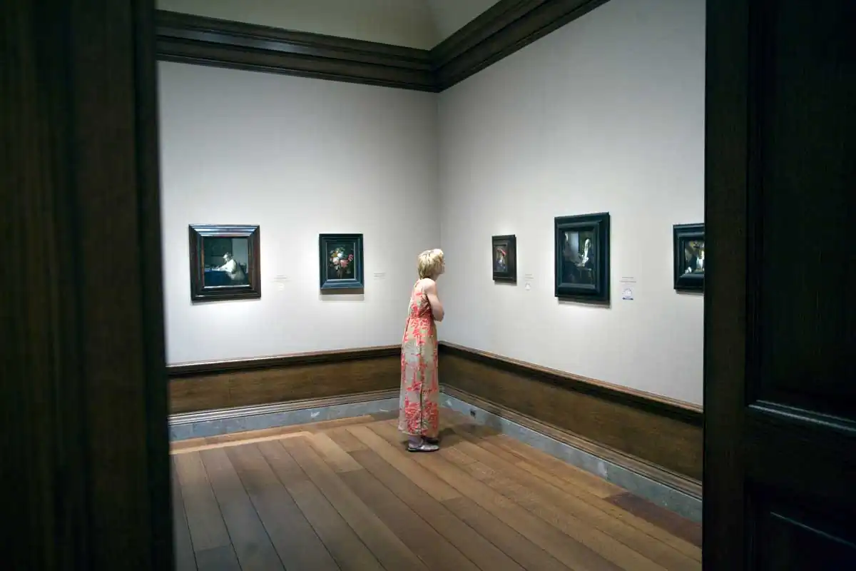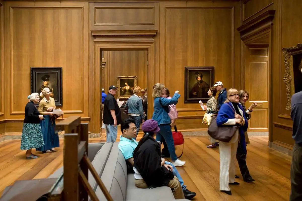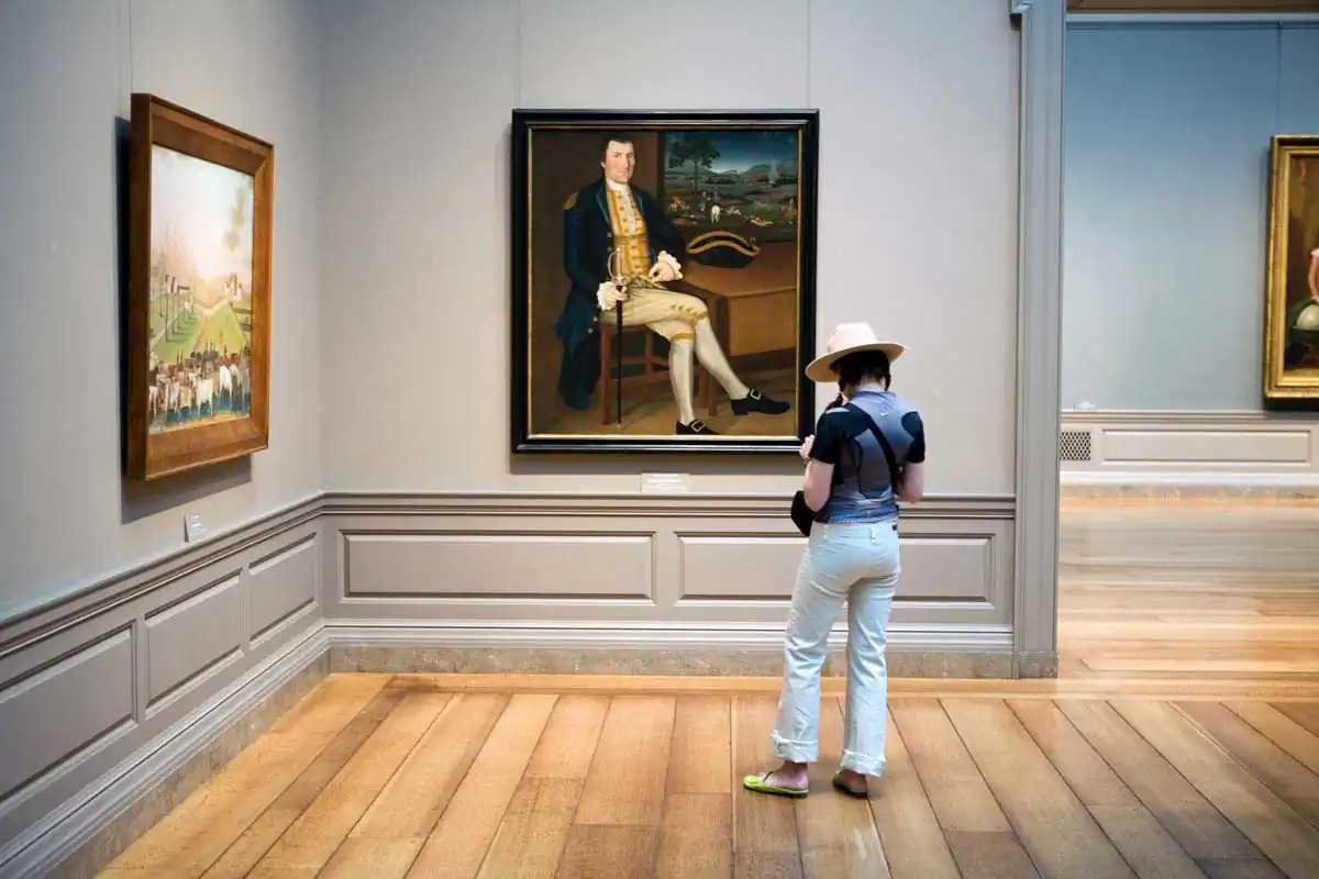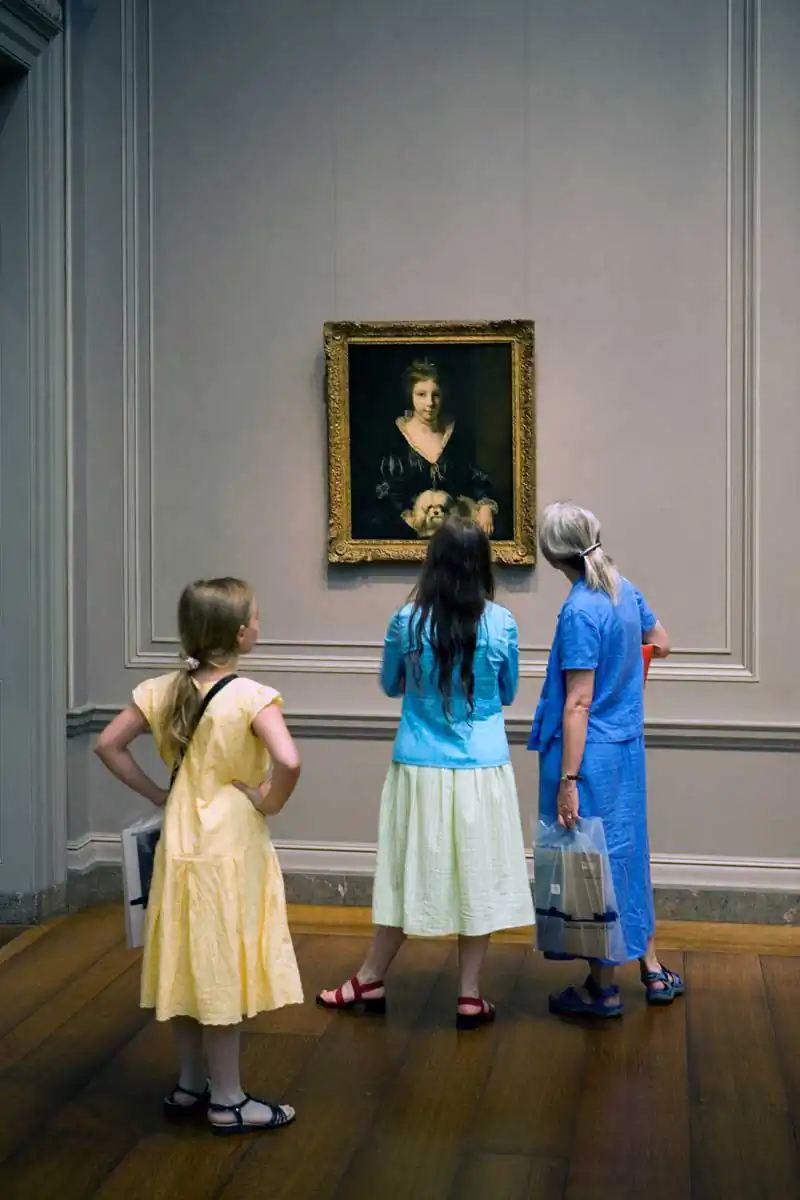 A museum is the quintessential milieu in which to observe this element of human existence. In the simplest terms, a museum exists to collect, to preserve and to present objects for visitors to look at and experience. The audience is limited to just looking and there is a certain etiquette in looking — not too close and definitely no touching. This perpetuates an often-humorous dance of the viewer around the artwork.