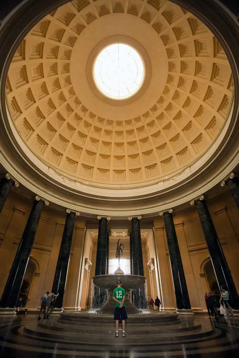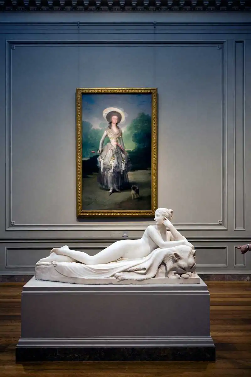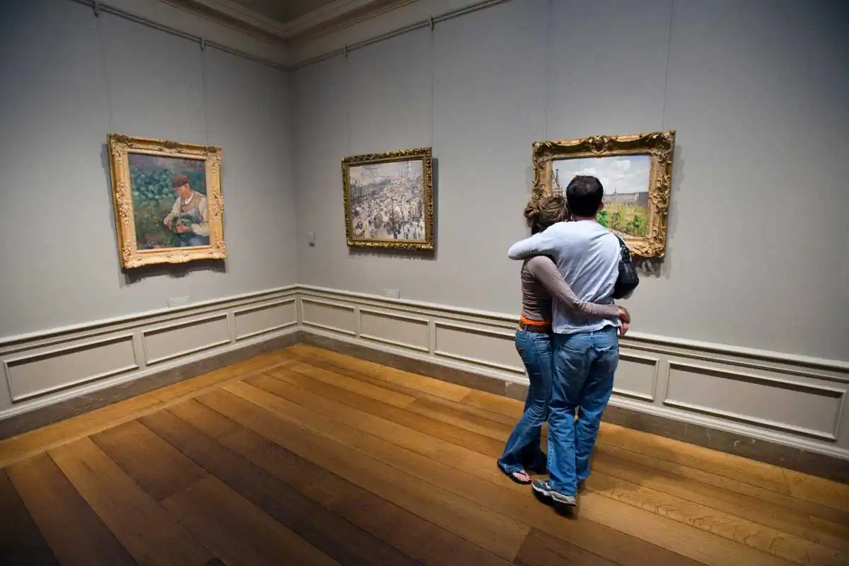 The people in the museum assume the paintings and sculptures are on display. But they are objects on display in Hirshfeld’s photographs. There is a false sense of privacy inherent in public space. Take, for example, the young couple comfortably consumed by Pissarro’s painting of Paris.  They embrace each other and share a tender moment together. Unknowingly, the moment is shared with Hirshfeld as well.