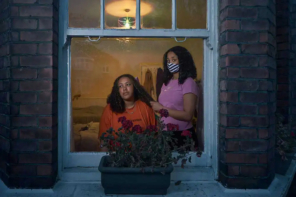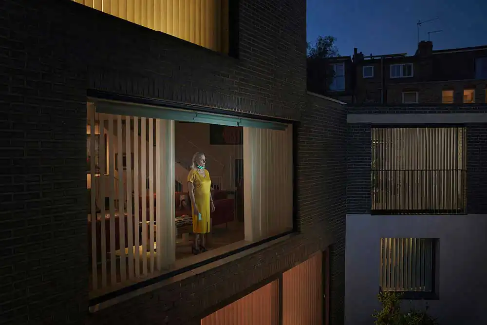 I felt numb but I knew that I couldn’t stand around and do nothing, I decided to document today’s existence as lived now by many people. I chose to capture them in their lockdown isolation, effectively imprisoned behind the windows of their homes looking out onto a different desolate world. I advertised my idea via social media and the local press in my home area of West London. The response was enormous. I even got responses from people living outside London expressing interest in taking part. For the past few weeks, every three days or so, I have photographed people in my area in self-isolation at home. People participate so enthusiastically that I feel I am giving them something to look forward to and break the monotony of their current existence.