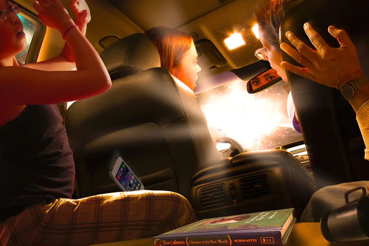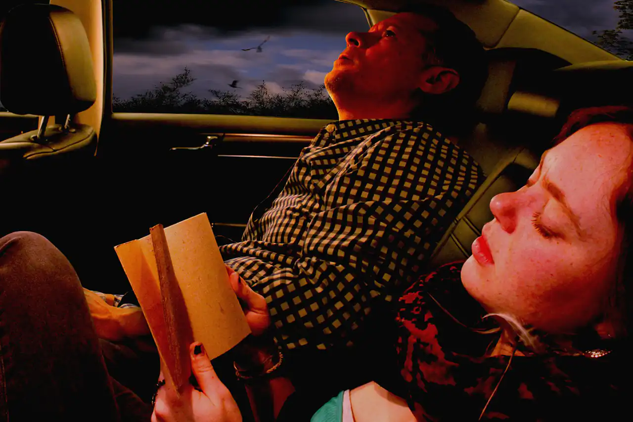 “The Lost Road” is a meticulously produced set of cinematic narrative photomontages depicting four people on a mysterious journey in a car as they become lost.